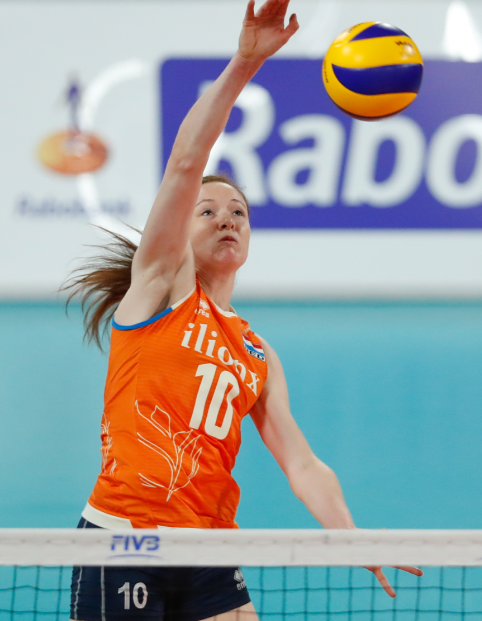 Oranje ging in de goedgevulde Sportcampus met dezelfde basis als gisteren (Laura Dijkema, Lonneke Sloetjes, Anne Buijs, Maret Balkestein, Robin de Kruijd, Yvon Beliën en Myrthe Schoot) furieus van start. Japan kreeg alle hoeken van het veld te zien. Met een killblock van Lonneke Sloetjes, een donderende pipe-aanval van Anne Buijs en een spike na een omloopbal van Robin de Kruijf, gevolgd door een ace, stond al snel 11-4 op het bord. Sloetjes produceerde vervolgens nog een killblock en knalde een bal op positie 2 rechtdoor naar beneden. Bij 16-5 begon ook Yvon Beliën met steekballen in het midden haar draai te vinden en was er geen houden meer aan. Morrison paste nog enkele wissels toe. Op 20-8 mocht Japan dankzij een paar eigen fouten van Oranje nog wat punten verzamelen. Celeste Plak leverde in de slotfase ook nog enkele poeiers af, maar die werden wonderwel door de snelle Japansen van de grond gehaald. Met een staffelaanval van Beliën en Buijs kreeg de set op 25-13 een passend slot.
