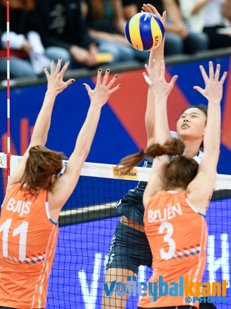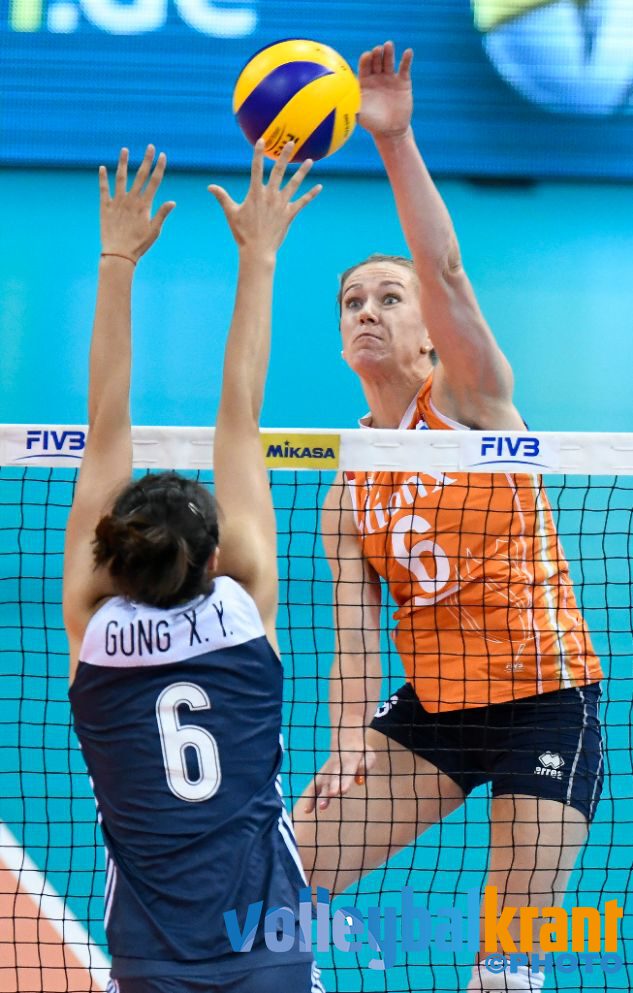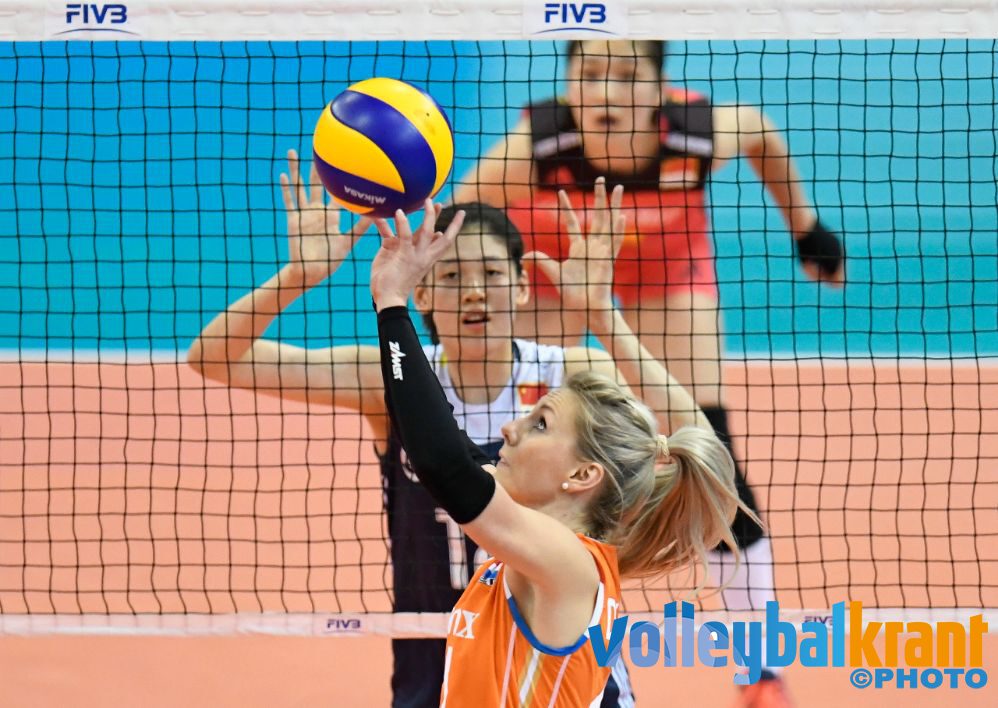 Nederland heeft een plekje bij de Final Six bemachtigd door regerend Olympisch kampioen China met 3-1 te verslaan. In Stuttgart hadden de Nederlandse dames het de eerste twee sets moeilijk, maar daarna was Oranje duidelijk de betere ploeg: 26-24, 17-25, 25-17 en 25-21.