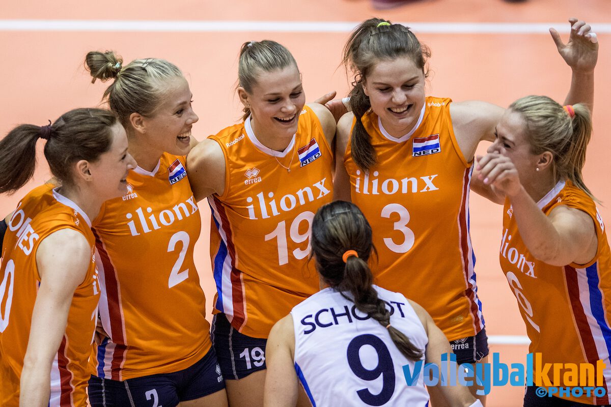 Het is de Oranje dames na de 3-0 winst gisteren ook vandaag gelukt om zonder setverlies te blijven. Een aanvallend sterk Oranje was duidelijk beter dan België, dat moeite had om de verdediging goed op orde te krijgen.