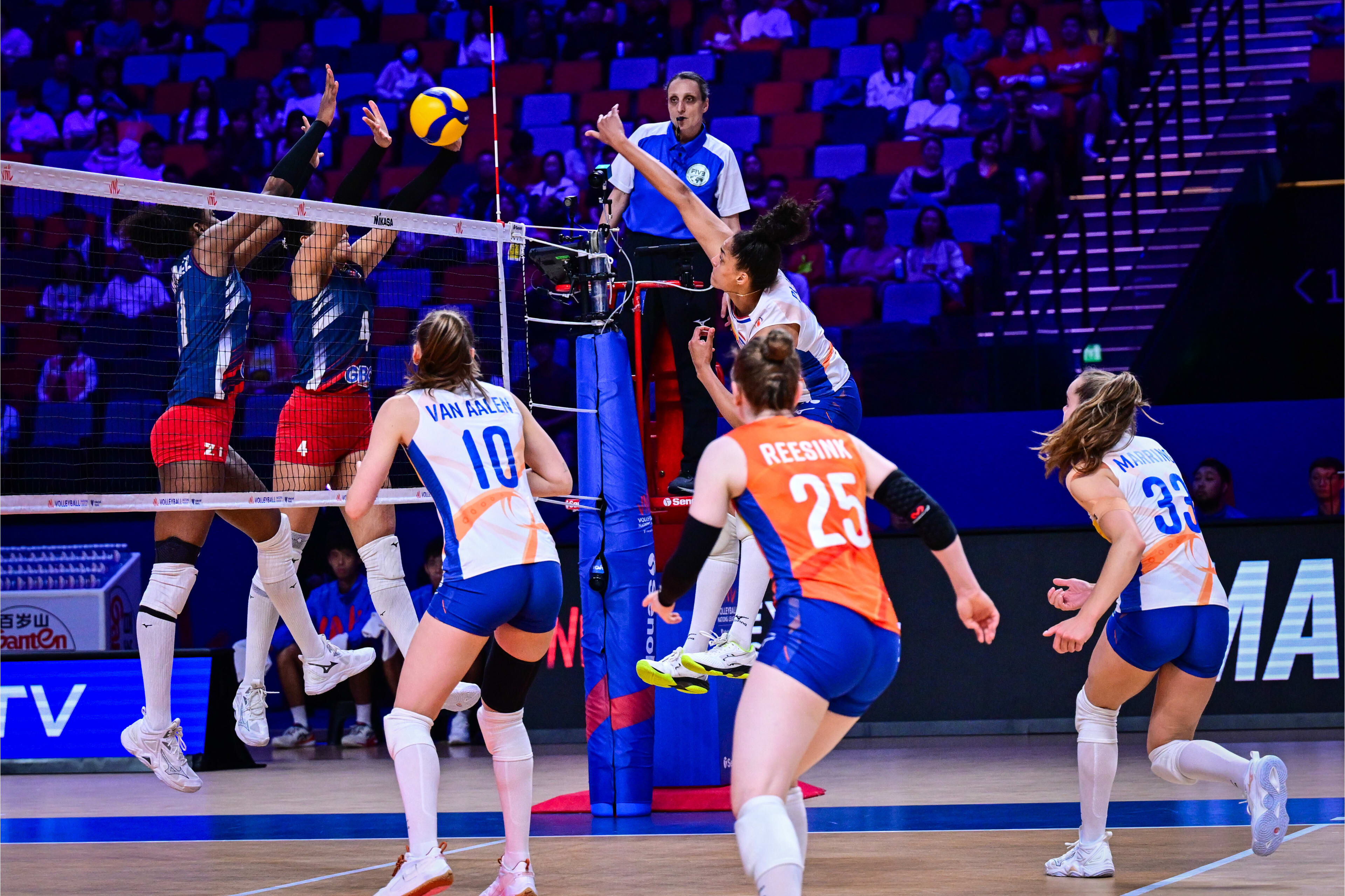 In set vier lieten de Volleybaldames zich niet meer verrassen en met opnieuw Marring in de hoofdrol stevende Oranje af op de eerste overwinning van deze tweede week in de Volleyball Nations League. Marring zette het eerste matchpoint op het scorebord en het was Plak die de derde poging wist te verzilveren. Alle aanvalsters van Nederland eindigden in de dubbele cijfers, met Marring als topscorer (21 punten, 2 aces), gevolgd door Dambrink (16 punten), Baijens (13 punten, 4 killblocks), Knollema (10 punten) en Timmerman (10 punten, 3 killblocks).