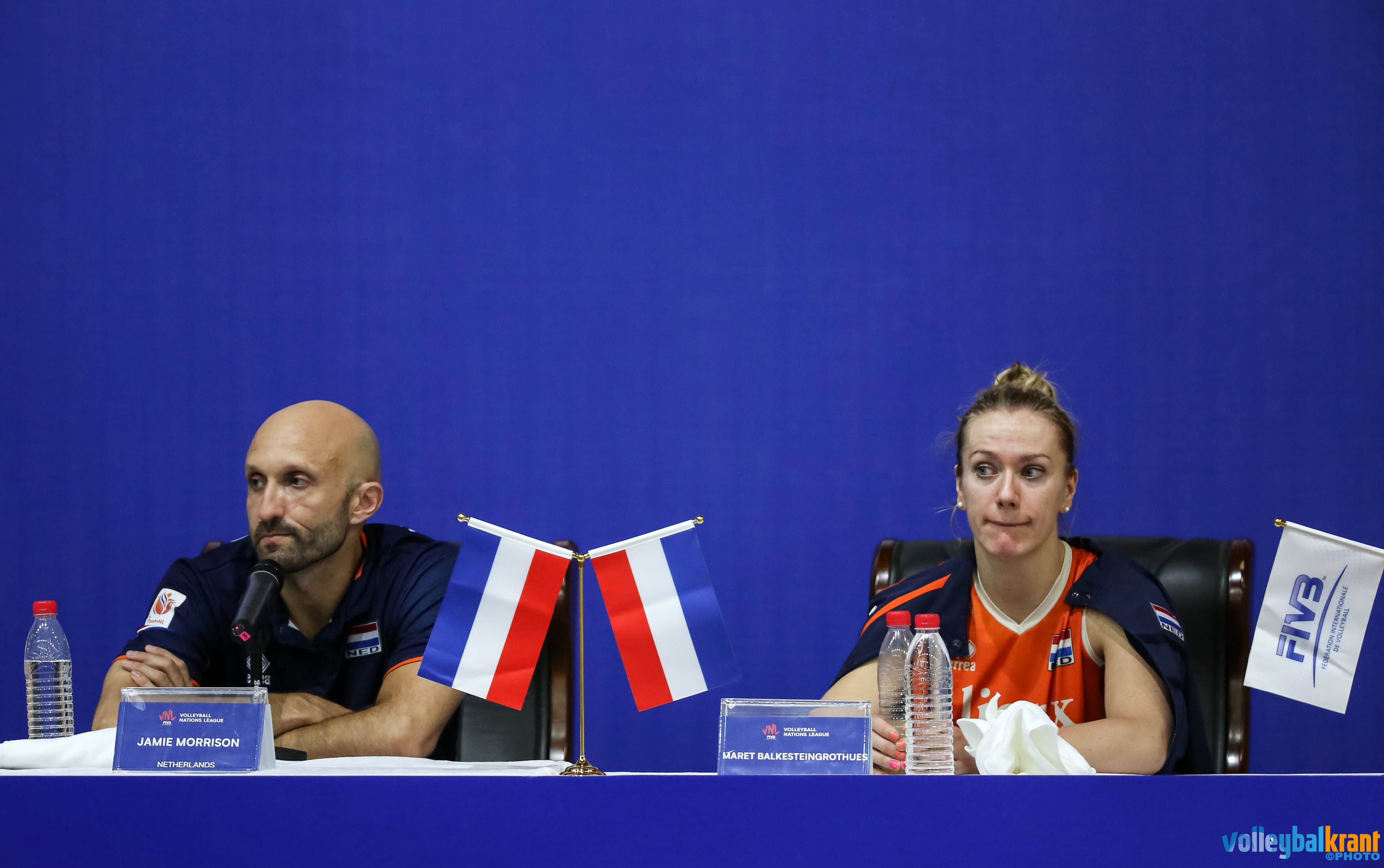 Oranje is de Final Six met een nederlaag begonnen tegen gastland en Olympisch kampioen China. Nederland pakte nog wel de eerste set maar kon in het restant van de wedstrijd niet op tegen het aanvalsgeweld van vooral Zhu Ting. Oranje begon met Juliët Lohuis in de basis op mid. Verder de vaste waarden Lonneke Sloetjes, Yvon Beliën, Anne Buis, Laura Dijkema en Maret Balkestein en Myrthe Schoot als libero.