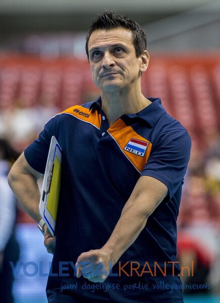 In de tweede set wil Guidetti een dubbele wissel aanvragen maar krijgt eveneens een challenge-aanvraag cadeau. Zijn geduld heeft plaatsgemaakt voor frustratie maar dankzij het sterke spel van Oranje kan hij zich beheersen. Ook Marcos Kwiek, coach van de Dominicaanse Republiek kreeg een gele kaart, nadat niet duidelijk was welke wissel hij wilde toepasen. In set drie stond Oranje op een gegeven moment met zeven speelsters in het veld, aldus de Dominicaanse Republiek. Het spel was echter nog niet begonnen, dus er is lang protest. Guidetti krijgt rood wegens deze fout, die vooral voor veel vertraging zorgt.