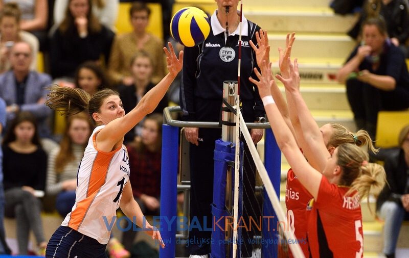 De Nederlandse volleybalsters hebben de eerste oefenwedstrijd van België gewonnen. De Oranje vrouwen waren met 3-0 te sterk voor de Yellow Tigers en wonnen ook de toegift in de uitverkochte IISPA-hal met 1300 toeschouwers.
