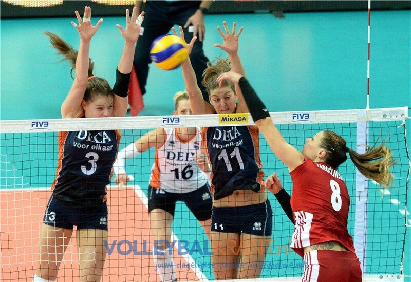 Bij Polen zijn de ogen vooral op Katarzyna Zaroslinska gericht, waar Nederland over meer belangrijke speelsters beschikt. In de tweede set stond Anne Buijs op toen Nederland het even moeilijk had. Blokkerend onderscheidde ze zich samen met Yvon Beliën; aanvallend legde ze met enkele slimme aanvallen de zwaktes van de Poolse verdediging bloot.