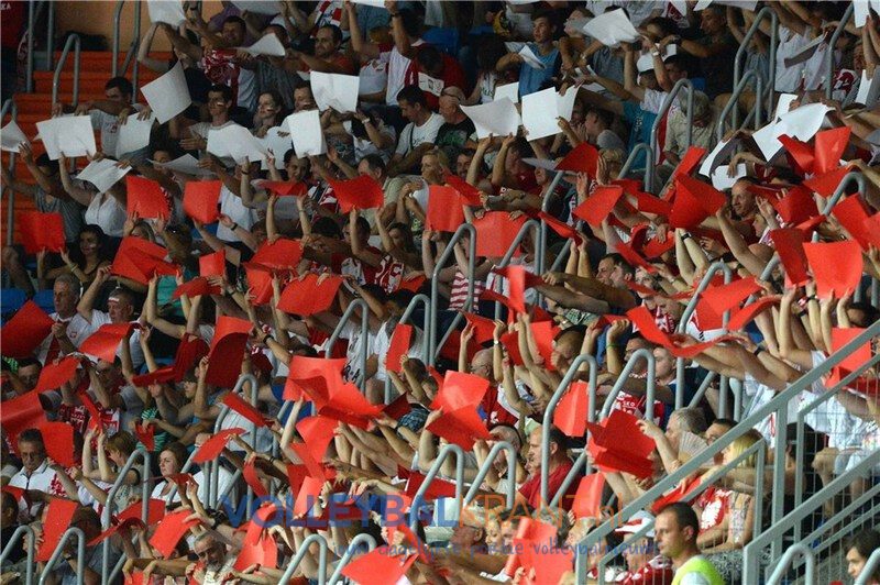 De Poolse volleybalfans lopen niet alleen warm voor de nationale mannenploeg, maar waren ook met duizenden naar Hala Globus in Lublin gekomen om de vrouwenploeg aan te moedigen.