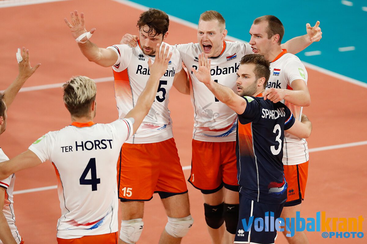 Gisteren had bondscoach Gido Vermeulen al aangegeven dat hij ook de laatste wedstrijd voor eigen publiek winnend wilde afsluiten. Dus begon hij met zijn vaste basis deze World League. Daan van Haarlem, Thijs ter Horst, Jasper Diefenbach, Wouter ter Maat, Robbert Andringa, Thomas Koelewijn en libero Dirk Sparidans.
