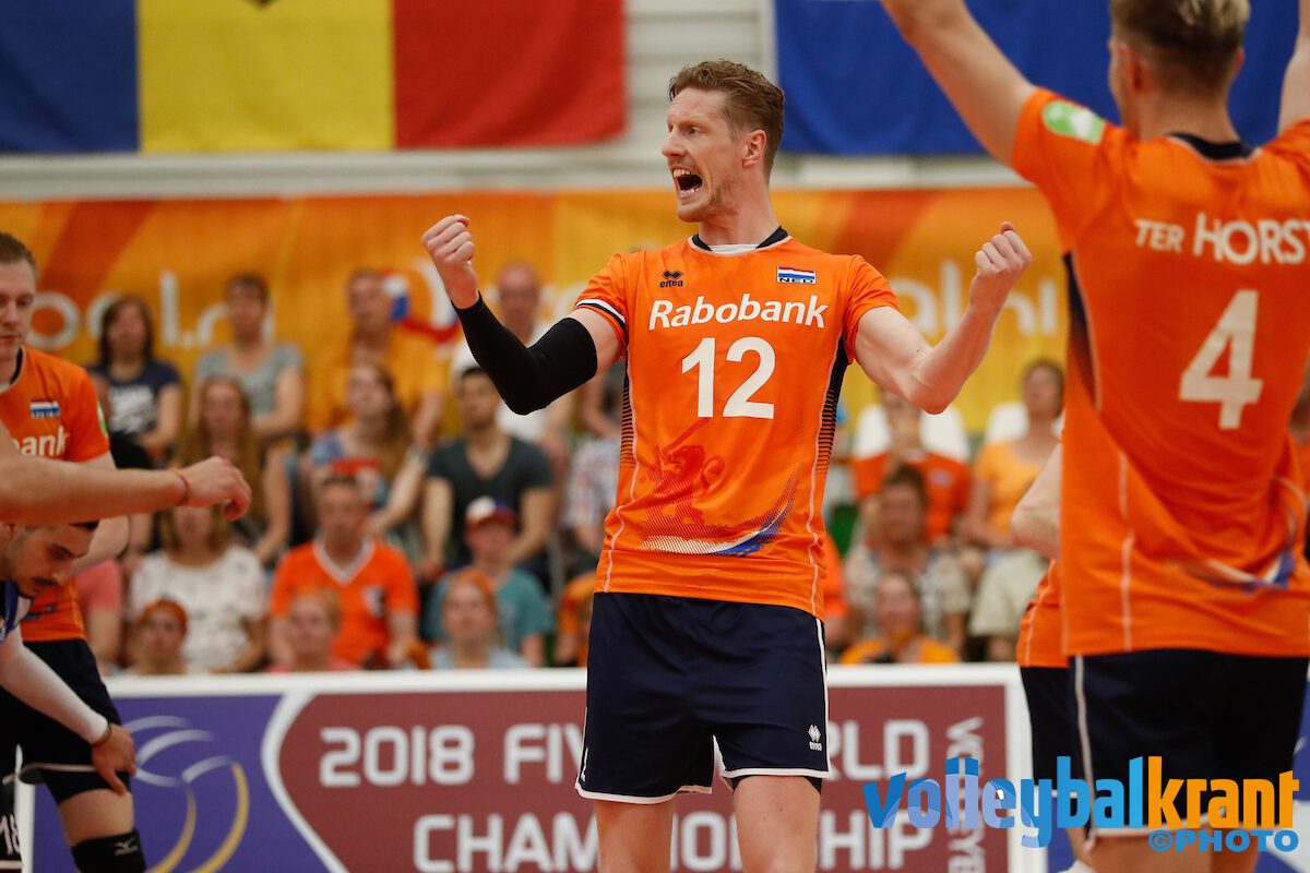 Bondscoach Gido Vermeulen haalde vandaag een truc uit met Fabian Plak als libero, waardoor Gijs Jorna als vierde passer/loper op het formulier kon. Hij kwam in de tweede set bij een achterstand van 11-14 binnen de lijnen om de passlijn te versterken. Tzourits was inmiddels op stoom, hij scoorde negen keer in de tweede set.