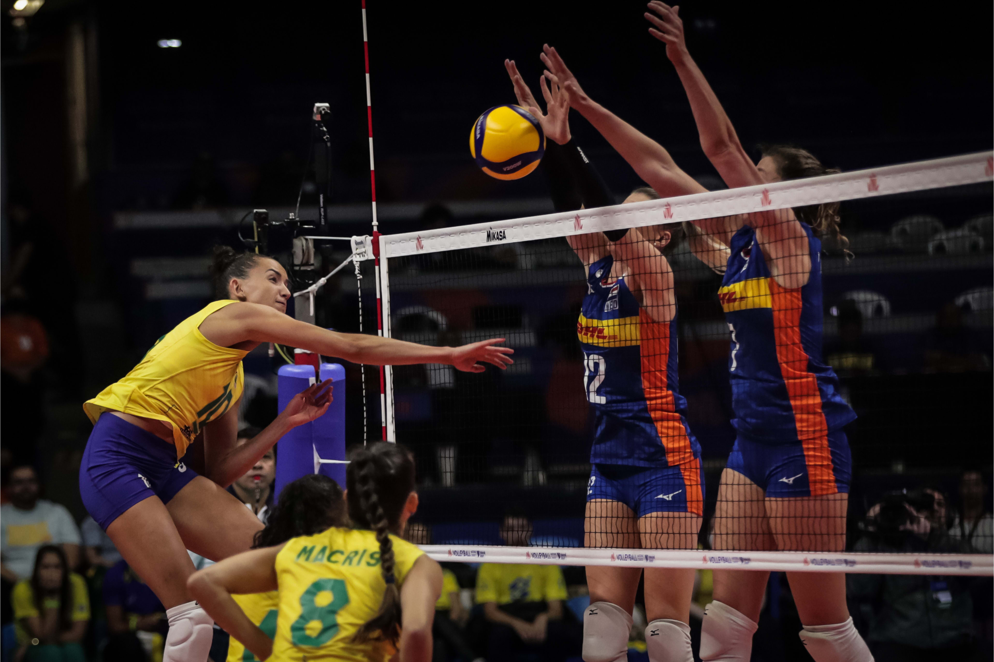 Een kleine honderd dagen voor aanvang van het WK in eigen land, is het de Nederlandse vrouwenploeg nog niet gelukt de sleutel naar de eerste winstpartij in de Volleyball Nations League te vinden. Thuisland Brazilië was in de zesde wedstrijd van dit prestigieuze toernooi veel te sterk voor Oranje. Het werd een kansloze 0-3 (16-25, 15-25, 23-25).