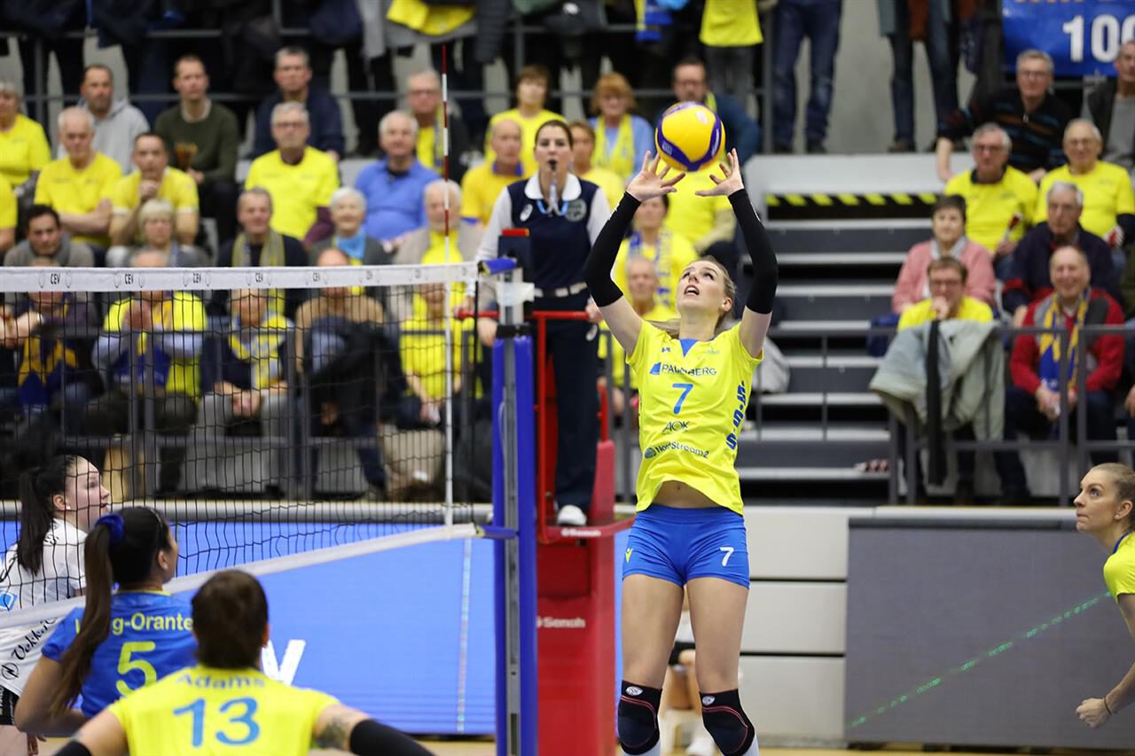 Luttikhuis krijgt steeds meer speeltijd bij Schwerin en blijkt in topvorm. Voor de bijna 2000 toeschouwers scoorde ze maar liefst 25 punten voor haar ploeg. Ze scoorde 17 keer de beslissende spike, maakte 2 killblocks en wist met haar serve 6 keer direct te scoren. Britt Bongaerts nam het spelverdelen voor haar rekening.