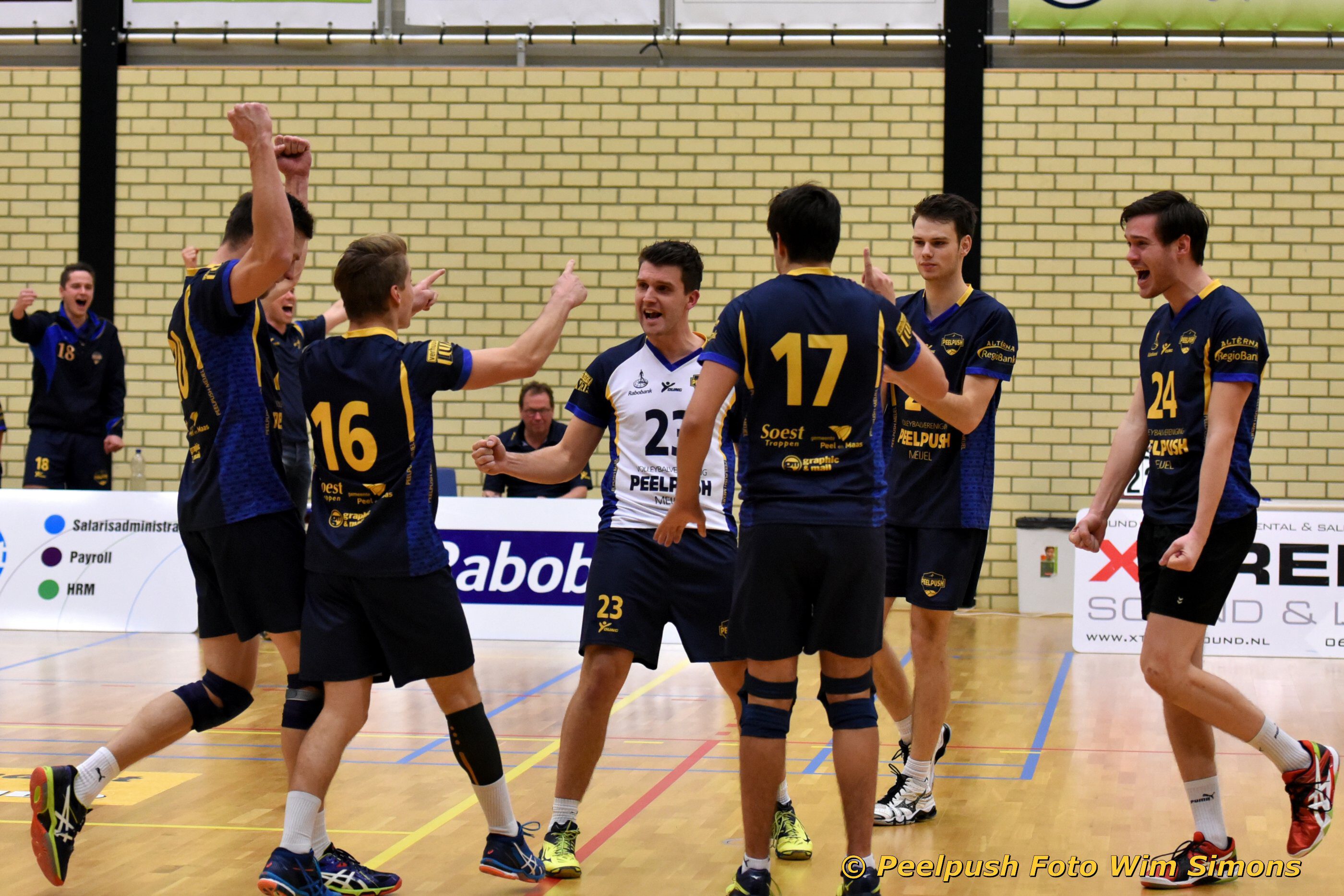 Peelpush begon in de eerste set sterk en bouwde direct een voorsprong op van 3 á 4 punten. Mede door een heerlijk stabiele pass en goed verdedigingswerk kon Rikus Leenders zijn aanvallers goed bedienen. Hierdoor zette Peelpush druk op Zwolle waar ze niet meer onder uit kwamen. Peelpush speelde hun eigen spelletje en walsten over Zwolle heen. 25-16 in de eerste set.