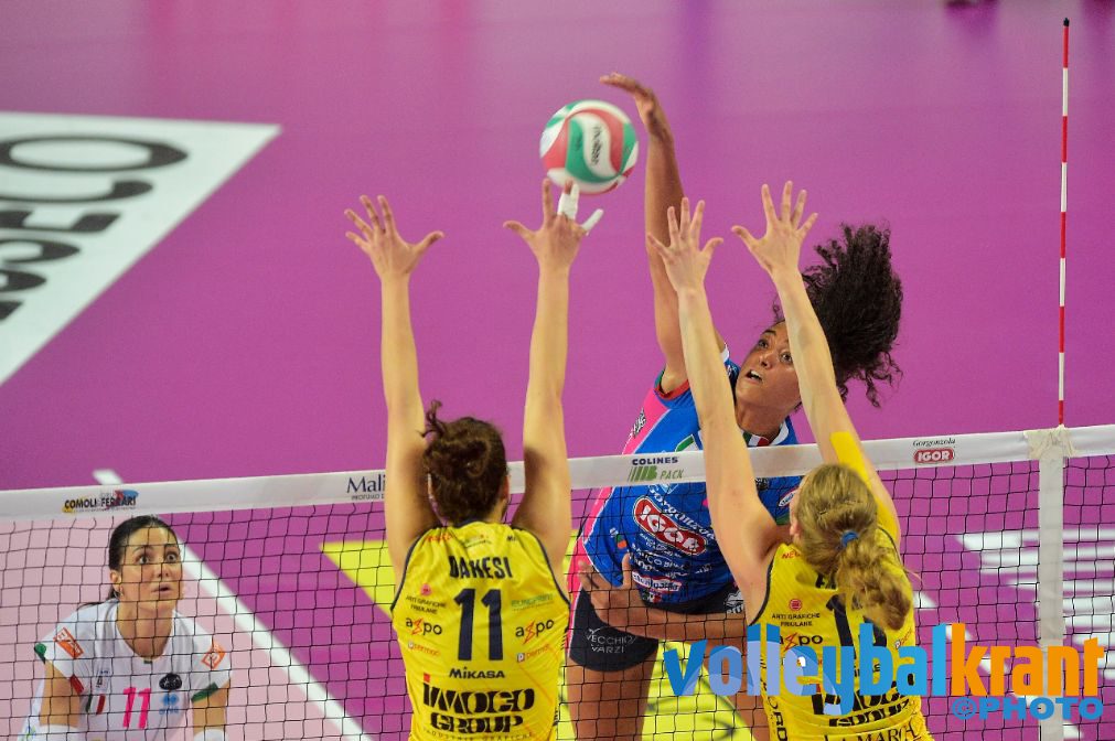 Celeste Plak had beide wedstrijden niet de topvorm en scoorde respectievelijk 5 en 7 punten. Vooral de hoge foutelast en de matige passing deden Novara de das om. Conegliano kan komende zondag in eigen huis de landstitel pakken, maar moet het dan zeer waarschijnlijk stellen zonder Raphaela Folie. Het is voor Conegliano al het zoveelste blessuregeval dit seizoen. Hierdoor heeft Santarelli zondag, zonder De Kruijf en Folie, slechts de beschikking over twee midspeelsters.