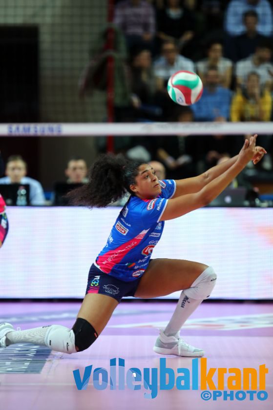 Het was slechts één set spannend bij de wedstrijd tussen Novara en Firenze. Alledrie de Nederlandse speelsters hadden een basisplaats, Celeste Plak bij Novara en Laura Dijkema en Nika Daalderop bij Firenze. Bijna elke set kende een zelfde spelbeeld. Novara sloeg vlot een klein gaatje en bouwde die gestaag uit. Na 21-16 in de eerste set werd het uiteindelijk 25-19. Ook in de tweede set leek Novara op een eenvoudige setwinst af te stevenen, na opnieuw een 21-16 voorsprong. Firenze wist zich echter terug te knokken en tot 24-24 te komen. Novara kwam toch weer op setpoint en maakte die via een killblock af. Ook in set drie lukte het Firenze maar moeizaam om in het spoor te blijven. Via weer 25-19 werd het toch een ruime zege voor Novara. Plak kwam 11 keer tot scoren, Dijkema 4 keer en Daalderop maakte slechts 3 puntjes.