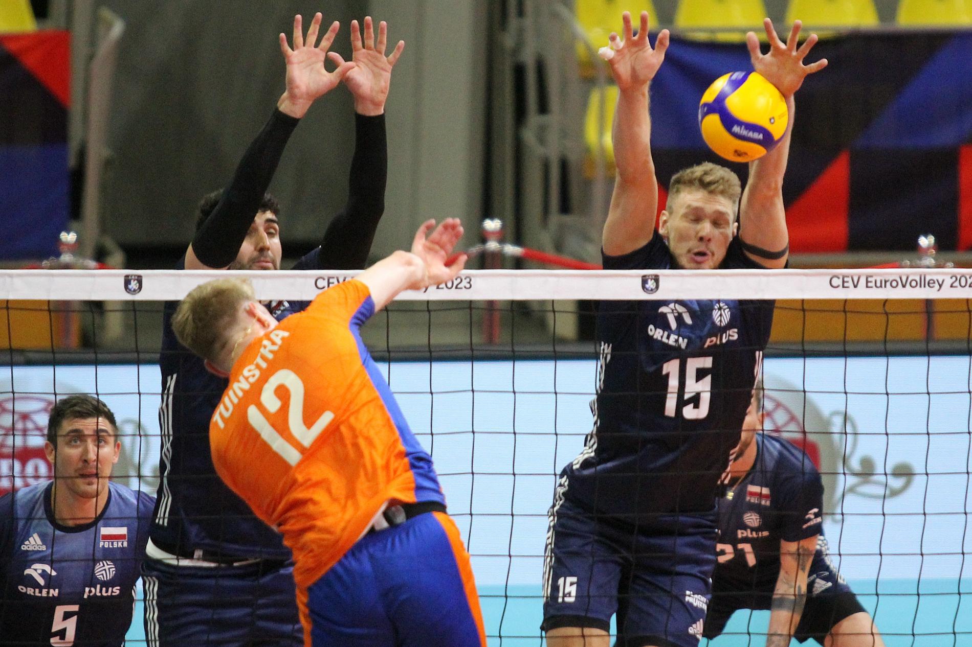 Oranje begon scherp en agressief. Plak maakte meteen met een harde ace een statement, en het was zichtbaar dat Nederland geloofde in een mooie wedstrijd. Profiterend van de foutservices van Polen gingen de Lange Mannen constant aan de leiding. De marge was weliswaar minimaal, maar er werd goed spel vertoond. Alle tips en tactische ballen werden goed verwerkt en een sterke Abdelaziz en Tuinstra zorgden voor mooie punten. Na 17-14 voor Nederland werd het nog wel 22 en 23 gelijk, maar op 24-23 wist Abdelaziz in de tegenaanval de goede eerste set te bekronen (25-23).