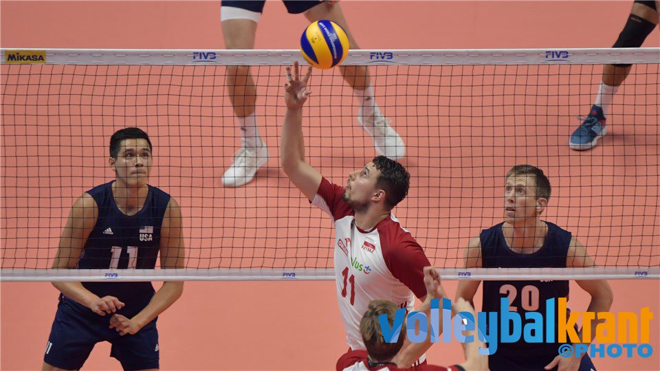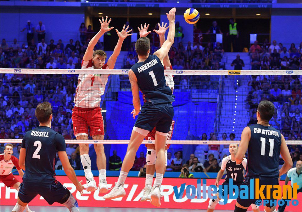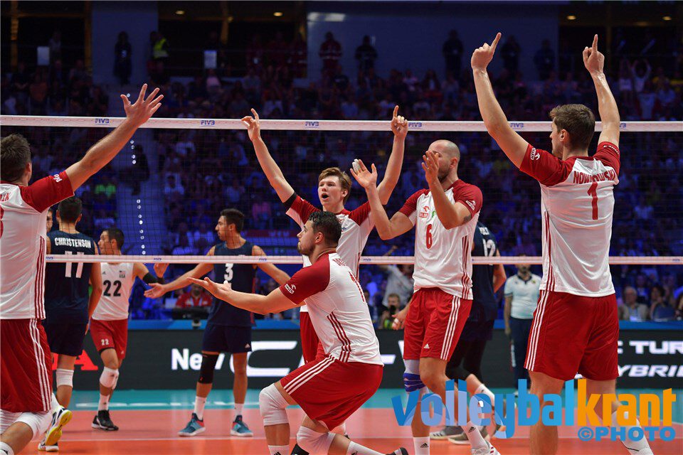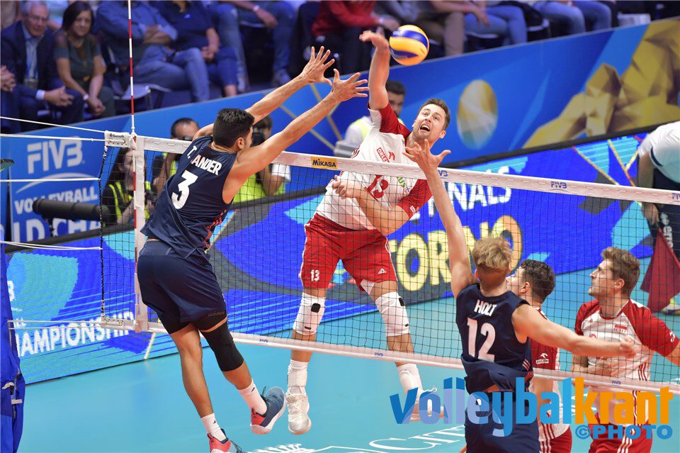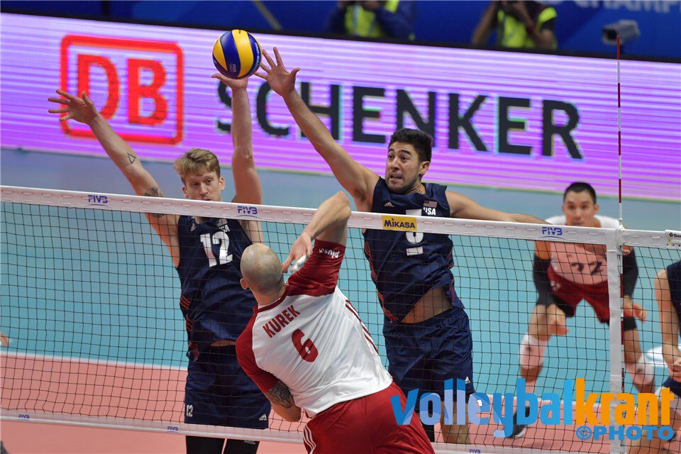 Polen vocht zich terug van een 1-2 achterstand in sets. En in de vijfde set werd het nog erg spannend. Polen zag de VS terugkomen van 11-5 tot 11-9. Toen was het Kurek die opstond en het verschil maakte. (25-22, 20-25, 23-25, 25-20, 15-11)