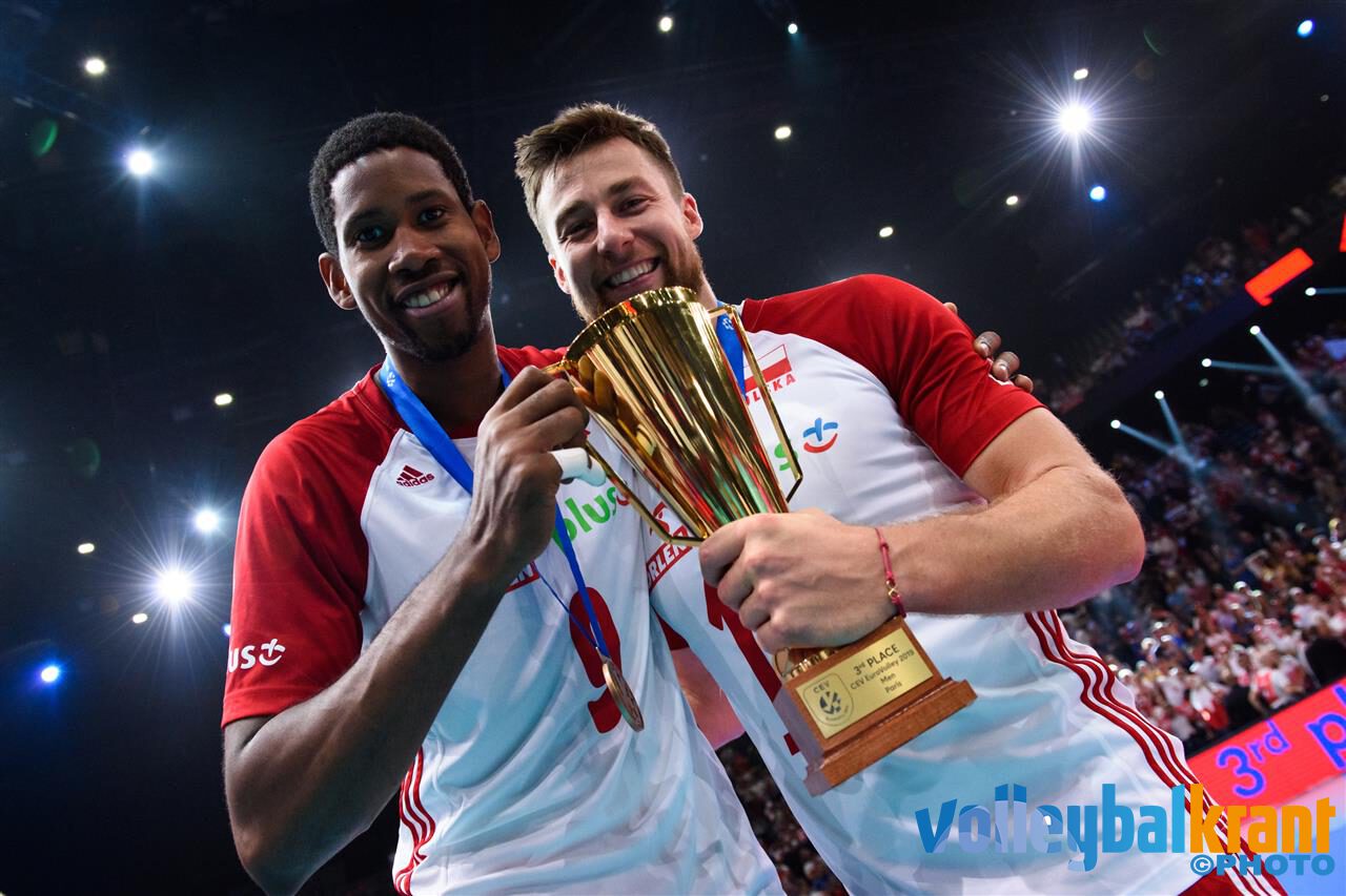 Beide teams hadden een grote teleurstelling te verwerken na het verlies in de halve finales. Toch maakten Frankrijk en Polen er zaterdagavond in de troostfinale een prachtig gevecht van. In de strijd om het brons bleek Polen aan het einde van de sets daadkrachtiger. De ploeg van coach Vital Heynen won met 0-3 (24 - 26, 22 - 25, 21 - 25) en veroverde daarmee voor het eerst sinds 2011 weer een medaille op het EK.