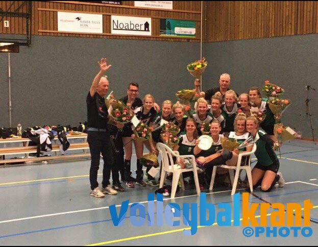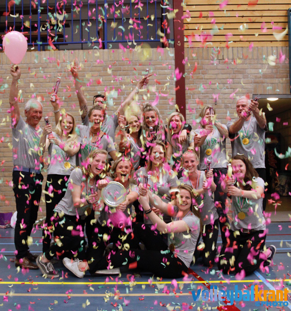 Volleybalkrant sprak op zondag met aanvoerster Ilse Wunderink en trainer/coach Eric Maan. Wunderink liet weten dat de aanloop naar de wedstrijd bijzonder relaxt was verlopen. De kampioenshirts zaten al in de tas en er was een bus vol supporters mee naar Mariaparochie voor de mentale steun. “Na het winnen van de eerste set hebben we even de tijd genomen om een feestje te vieren. Het is daarna moeilijk om er met je hoofd bij te blijven, maar we hebben het goed afgemaakt. Na de vijfde set gingen we uiteraard door met juichen, helaas is Jasmijn Leusveld toen door haar enkel gegaan. Zij moest een groot deel van het feest dus missen en in het ziekenhuis doorbrengen. Het is nog afwachten wat de ernst van de blessure is. We zijn uitgebreid gefeliciteerd door ouders, publiek en het bestuur en er was natuurlijk de schaal van de Nevobo. Daarna was het tijd voor pizza en het feest eindigde pas in de late (of vroege?) uurtjes in de stad.”