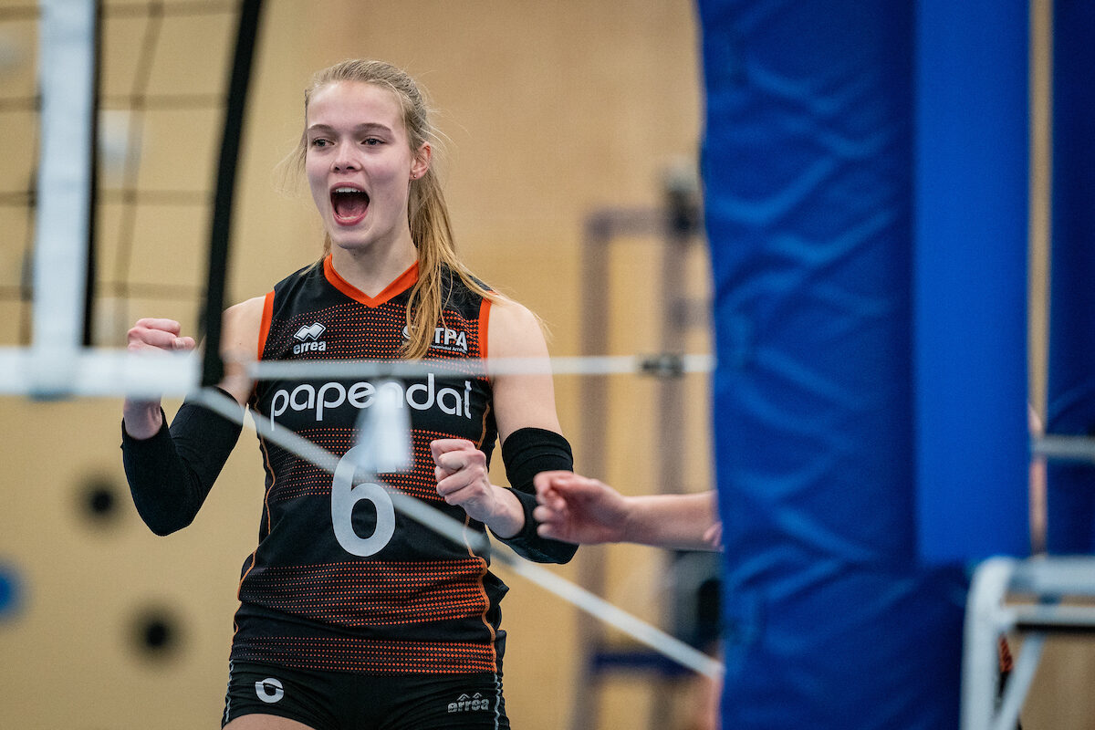 Ook in de Van de Knaaphal in Ede kwamen er vijf sets aan te pas en ook in dit geval kwam de thuisspelende ploeg terug van een achterstand. FAST begon nog goed aan de wedstrijd door de eerste twee sets te winnen (21-25, 20-25) door de scores van Lara Hendricks en Lisan Siemonsma. Het Talent Team wist zich echter goed te herpakken en liet de gasten niet verder komen dan die twee gewonnen sets. Het ging niet makkelijk en het verschil was klein, maar mede dankzij Annika de Goede en Iris Vos konden de talenten op gelijke hoogte te komen (25-23, 25-23). Ook in de beslissende vijfde set was het Talent Team net iets sterker en bleven de zege en de twee punten toch in eigen huis (15-12). Vijf speelsters scoorden dit keer in de dubbele cijfers: Hendricks (25 pnt), Vos (18 pnt), Siemonsa (17 pnt), Veerle van den Heuvel (14) en Annika de Goede (12 pnt).