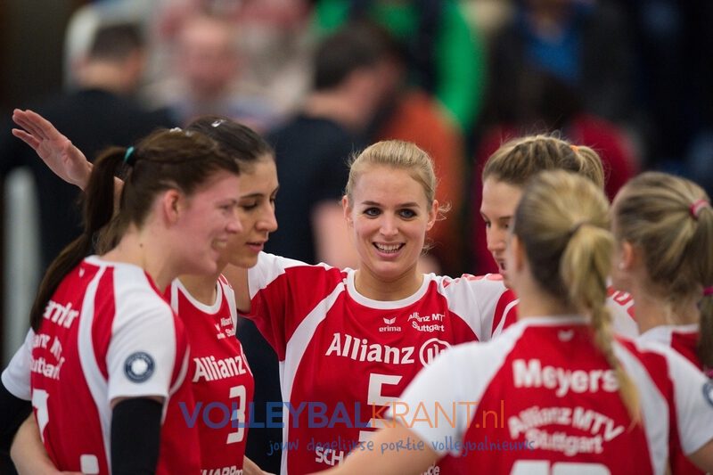 In de vijfde set denderde Stuttgart door, maar het wist niet te voorkomen dat het toch nog spannend werd in de slotfase. Stuttgart parreerde met moeite het aandringen van Aachen en bereikte met 13-15 uiteindelijk net als eerste de eindstreep dankzij twee scores van Renata Sandor.