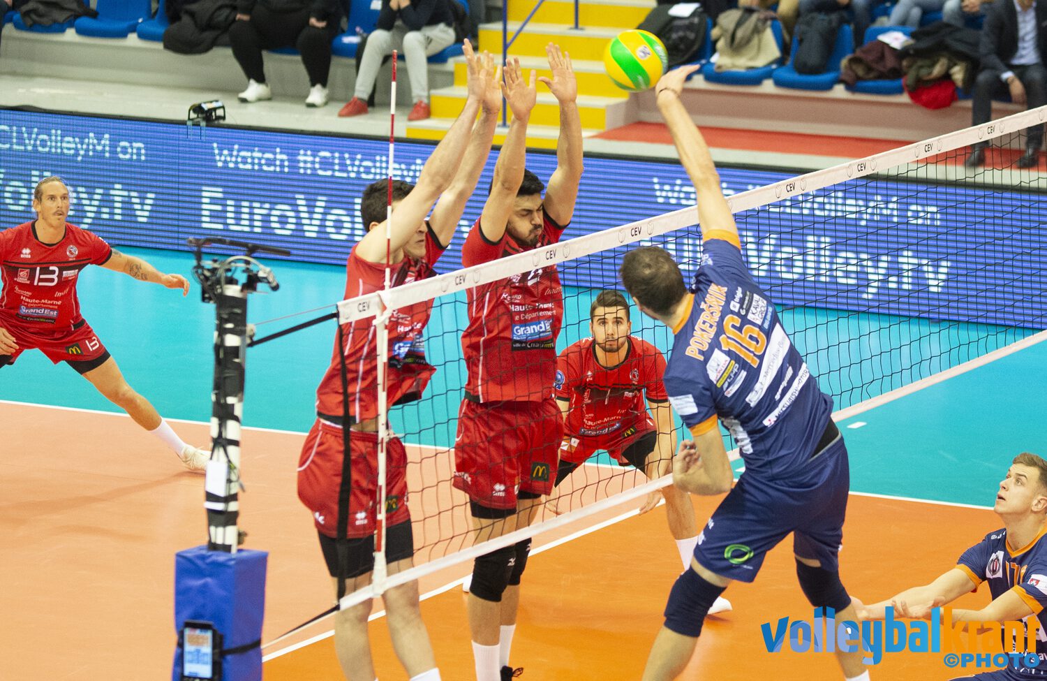 Het Franse team dat in Reims zijn Champions Leaguewedstrijden speelt had pas in de laatste twee sets iets te vrezen voor het Sloveense ACH Volley Ljubljana. Nadat de eerste twee sets met overtuiging werden gewonnen (25-18, 25-13), kregen de Fransen een sterker serverend Ljubljana tegenover zich. Zij wonnen de derde set met 28-30 en waren in de vierde dichtbij de zeg, maar Chaumont kon nog net met 28-26 zegevieren.