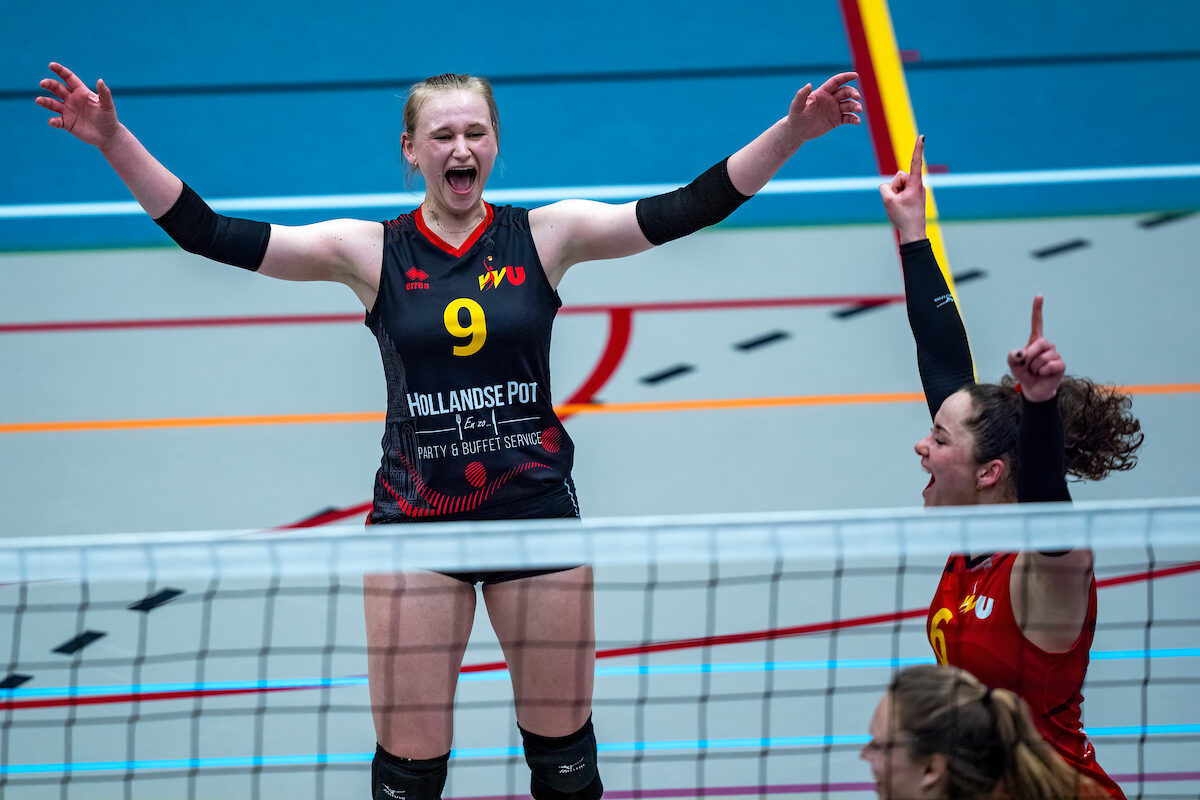 Donderdagavond werd de doordeweekse speelronde afgesloten door het in vorm verkerende Meerdervoort VV Utrecht tegen Sliedrecht Sport. Het werd een wedstrijd met veel service- en aanvalsfouten, waarin de Utrechtse ploeg uiteindelijk de minste fouten maakte. Alle sets werden pas boven de twintig beslist, waarbij Sliedrecht Sport in de eerste set een voorsprong uit handen gaf. In de tweede set kwamen de gasten terug van een achterstand, maar dankzij twee scores op rij van invalster Laurine Geerdes ging ook die set naar de thuisploeg. In set drie was de eer aan Pleun Ypma om met twee punten achter elkaar de derde overwinning voor VV Utrecht binnen te halen (25-22, 25-23, 25-21).