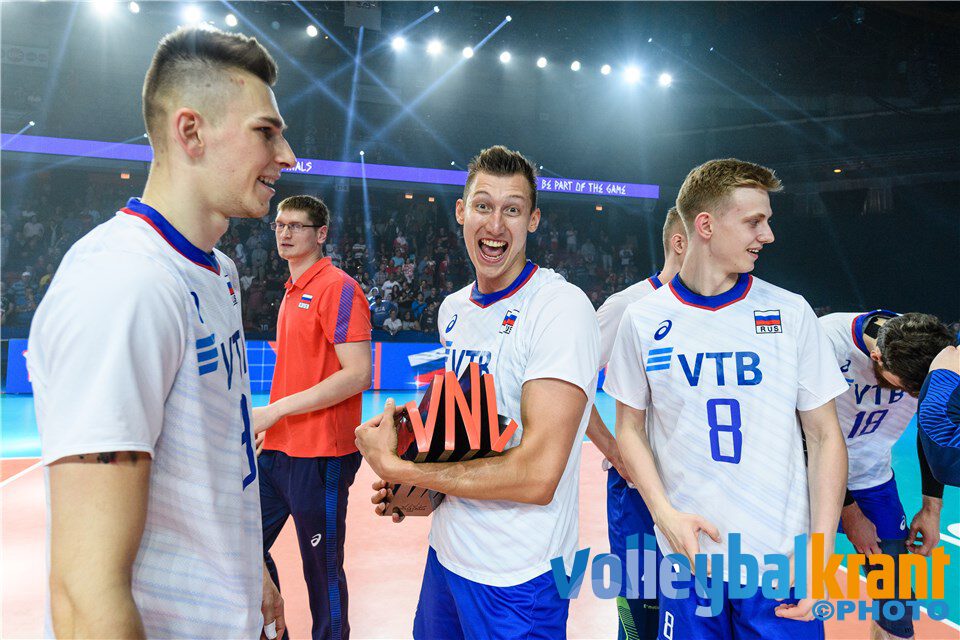 De Russische mannen hebben in Chicago voor het tweede jaar op rij de Volleyball Nations League gewonnen. Vorig jaar in Lille werd thuisploeg Frankrijk in de finale verslagen, zondagavond verloor Amerika voor eigen publiek in vier sets. (25-19, 24-26, 25-22, 25-21)
