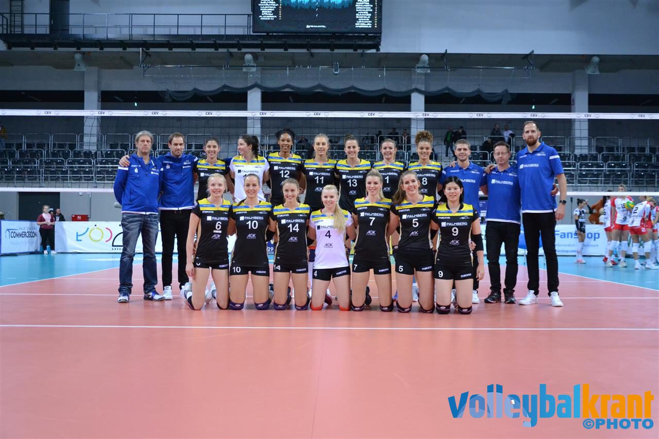 Felix Koslowski koos voor een team met ervaring en had geen basisplaats ingeruimd voor Britt Bongaerts en Tessa Polder. In de sfeervolle hal, waar de Poolse fans er continue een feestje van maakten, was het de thuisploeg die goed van start ging. Na een gelijkopgaand begin nam Lodz het initiatief en kwam op 16-11. Het blok en de aanval van de Poolse ploeg maakte in set één het verschil, die met 25-18 dan ook gewonnen werd. Set twee bood een ander spelbeeld, de teams waren meer aan elkaar gewaagd. Het waren uiteindelijk de eigen fouten die Schwerin de das om deden, maar liefst 10 punten gaven ze Lodz cadeau. De set eindigde ook met een foutservice, waardoor Lodz op 2-0 kwam (25-23).