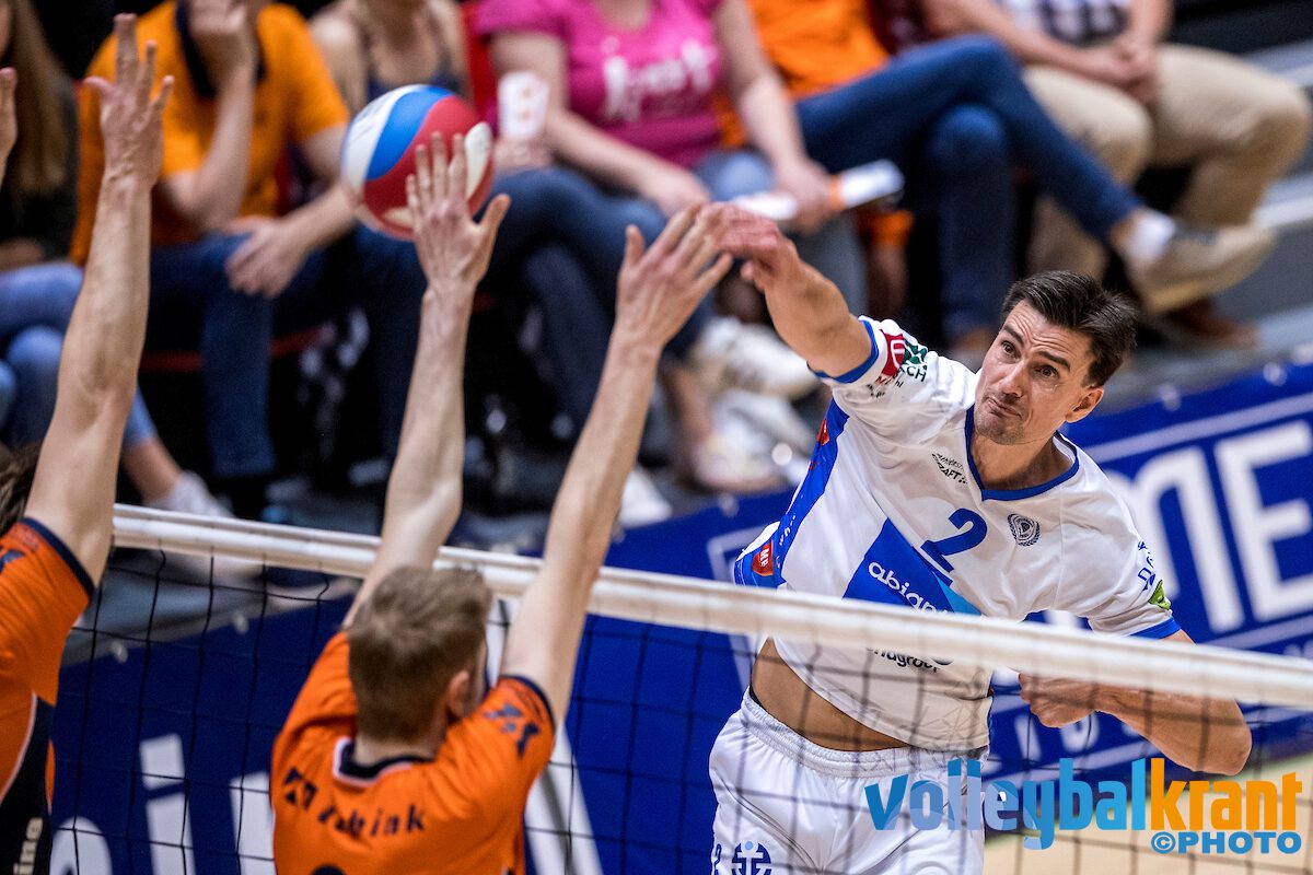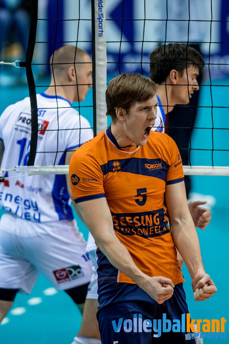 Maar in de vierde en vijfde set zag Orion het alles-of-niets-offensief beloond. Daarbij kwam het mooi uit de Lycurgus – wellicht door de spanning – de bal regelmatig buiten de lijnen sloeg. In set nummer vier ging het nog wel even gelijk op, maar in de vijfde set was sprake van een onverwachte walk-over. Bij Orion lukte alles, bij de thuisploeg niks meer: 21-25, 6-15.