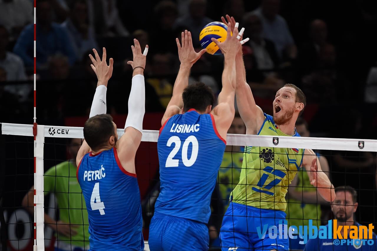 In de eerste set leek Slovenië de uitstekende vorm waarin zij al het hele toernooi verkeren door te trekken. Aanvallend en blokkerend had Slovenië de overhand en Servië liep de gehele set achter de feiten aan. Maar vanaf set twee waren de rollen omgedraaid.