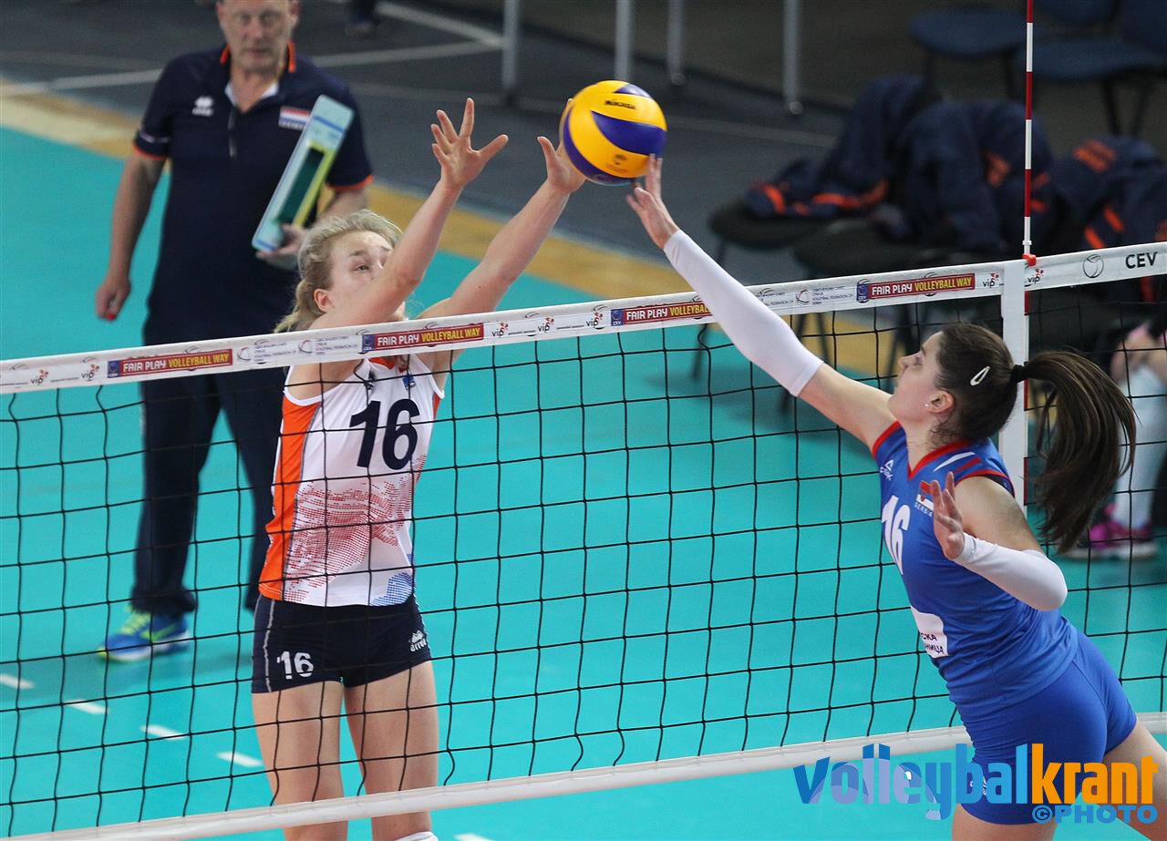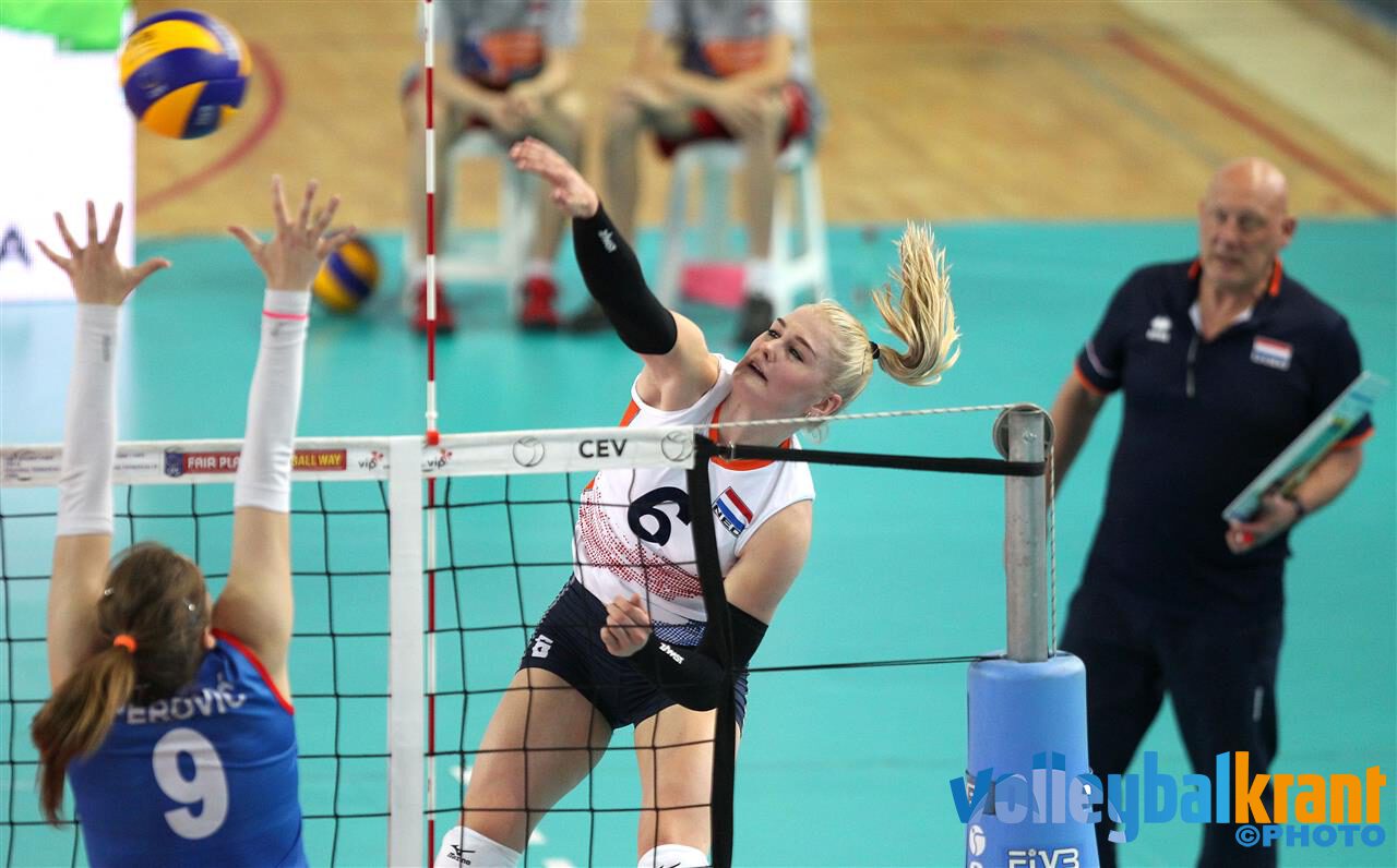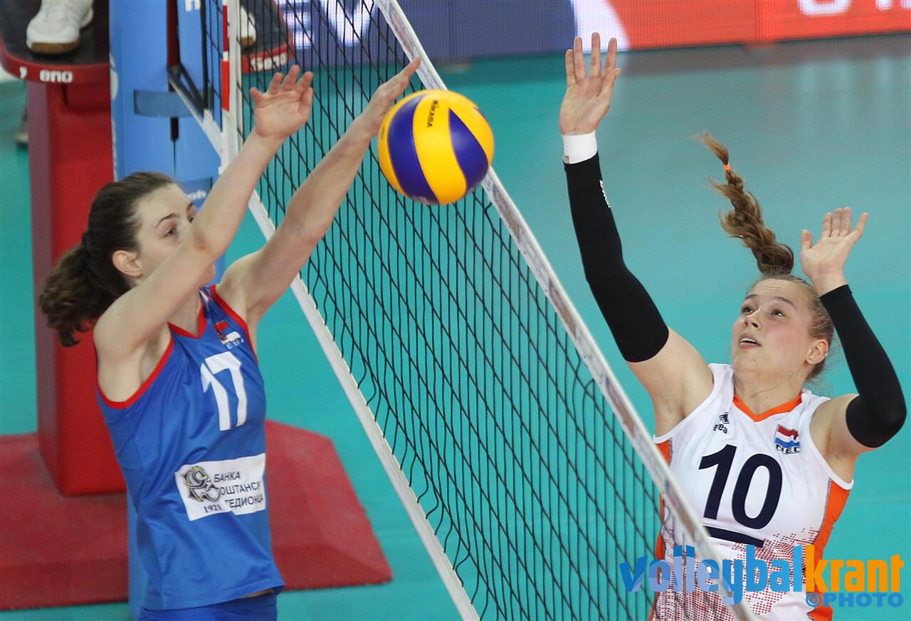 Voor de Nederlandse meisjes onder 19 jaar was het zaterdag bij de derde wedstrijd op het EK-kwalificatietoernooi in Servië erop of eronder. Tegenstander Servië had ook tweemaal gewonnen van Denemarken en Hongarije, dus de onderlinge wedstrijd zou beslissen wie nu door zou gaan en wie naar de herkansing in juli a.s. moet. Jong Oranje won de spannende eerste set, maar was in de volgende drie sets kansloos. Bondscoach Julien van de Vijver probeerde door wissels het tij te keren, maar de passing bleef zwak en de aanval scoorde daardoor (vrijwel) niet. Bij Nederland kon alleen Annick Meijers meedoen met de vier Servische aanvalsters die in de dubbele cijfers scoorden. Het werd daardoor een 1-3 nederlaag voor Jong Oranje (30-28, 16-25, 15-25, 18-25).
