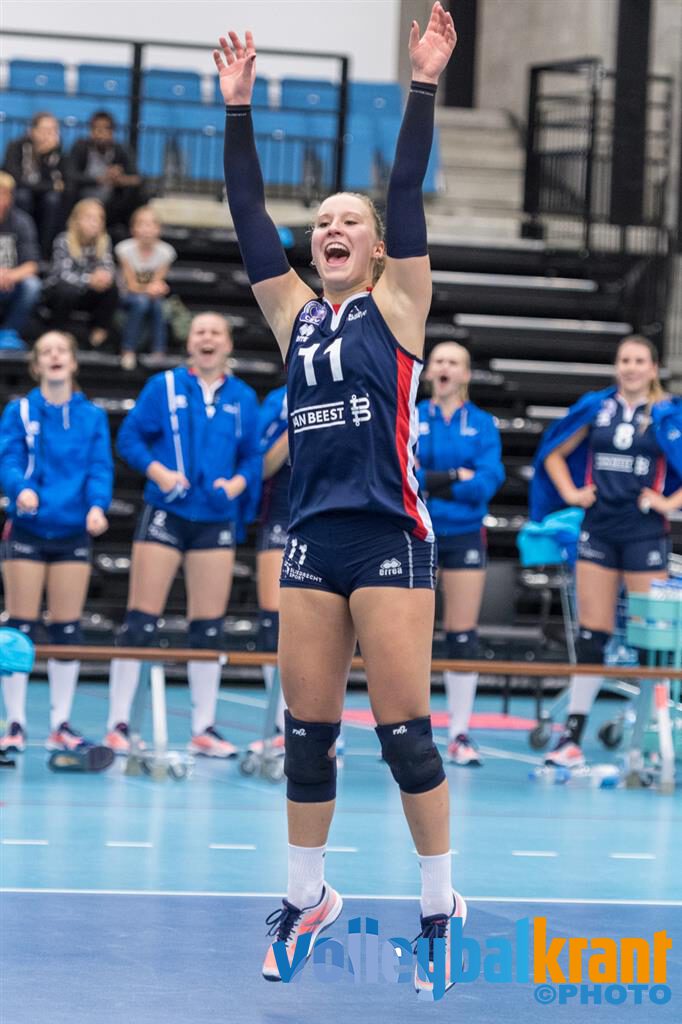 De tweede set is spannend, maar het is Sliedrecht wat bij 22-24 als eerst op setpoint komt. Met een sterke verdediging komt het team van Gert van de Broek toch weer terug tot 24-24. Hullegie zet met een aanval haar team op 24-25, waarna Lynn Thijssen het met een ace afmaakt.