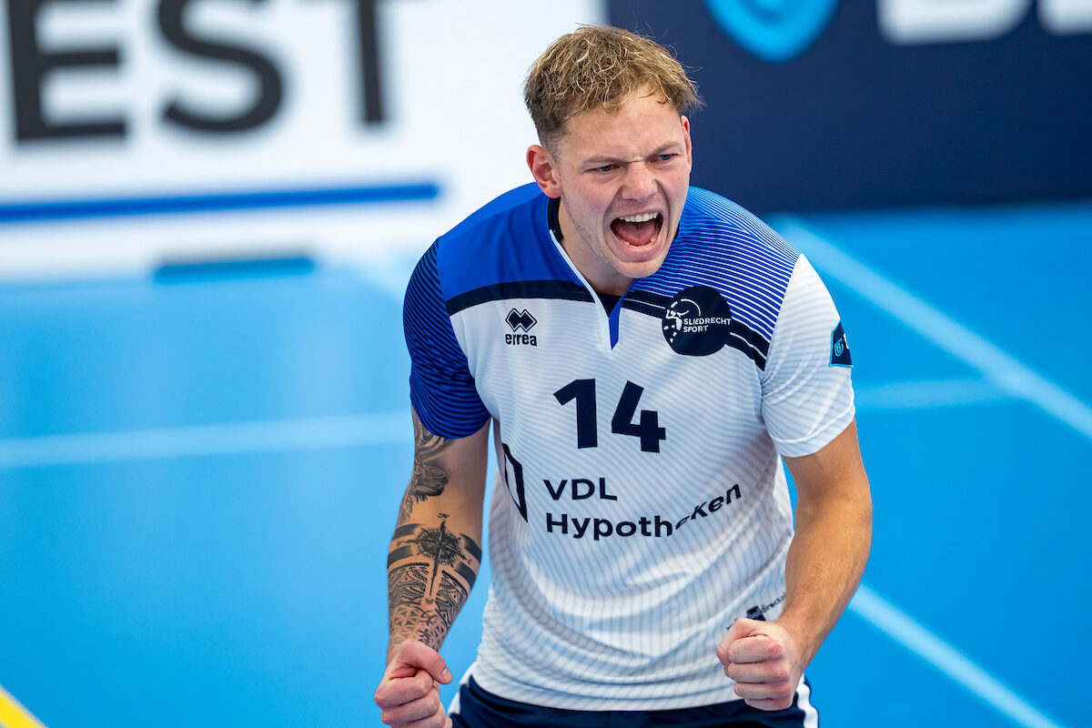 Sliedrecht Sport is bezig aan een uitstekende reeks in deze poule met vijf overwinningen op rij. Dit weekend won het in een zeer spannend duel van Scherp in Packaging ZVH, dat al uitgeschakeld is voor de play-offs. In zowel de eerste als tweede set was Zevenhuizen op weg naar setwinst, kreeg het verspreid over twee sets maar liefst acht setpoints, maar de thuisploeg wist daarvan geen enkele te benutten. Met twee keer een goede serviceserie van Jacob Krijnsen en de scores van Luuk de Groot (14 punten) trok Sliedrecht Sport alsnog de eerste twee sets naar zich toe. Daarna was het verzet van Scherp in Packaging ZVH gebroken en kon Sliedrecht Sport zonder setverlies de overwinning naar zich toetrekken (27-29, 25-27, 21-25).