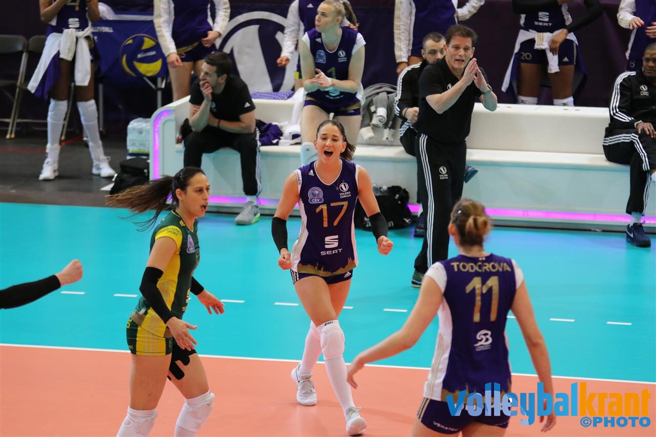 Ook in poule D stond de koppositie nog op het spel en die strijd werd uitgevochten door Vakifbank en Galatasaray. De Turkse topteams deden weinig voor elkaar onder, maar de service zou uiteindelijk het verschil maken. De eerste twee sets waren voor Vakifbank, waarna de thuisploeg de derde set naar zich toe trok. In een spannende vierde set leek Galatasaray er een vijfsetter van te maken, maar Vakifbank vocht zich terug. Twee setpoints waren aan Galatasaray niet besteed, waarna Vakifbank op het eerste matchpoint wel toesloeg. Met die 1-3 zege behield de titelhouder de ongeslagen status in de poulefase.