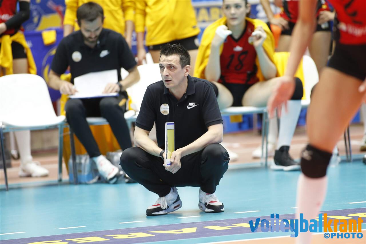 Zowel Guidetti als Santarelli speelde met dezelfde basis als waar de teams afgelopen week landskampioen mee werden. Aanvankelijk deden de teams weinig voor elkaar onder, maar een schitterend killblock van Milena Rasic zette Vakifbank op een beslissend gat van drie punten (17-20) en zorgde ervoor dat de eerste set naar de titelverdediger ging. Lonneke Sloetjes mocht het setpoint binnenslaan: 25-22. In set twee was het Vakifbank dat dit keer vroeg in de set al uitliep. Sloetjes zette haar ploeg met een fantastische tipbal op het eerste setpoint (24-20) en mocht het zelf op het tweede setpoint afmaken.