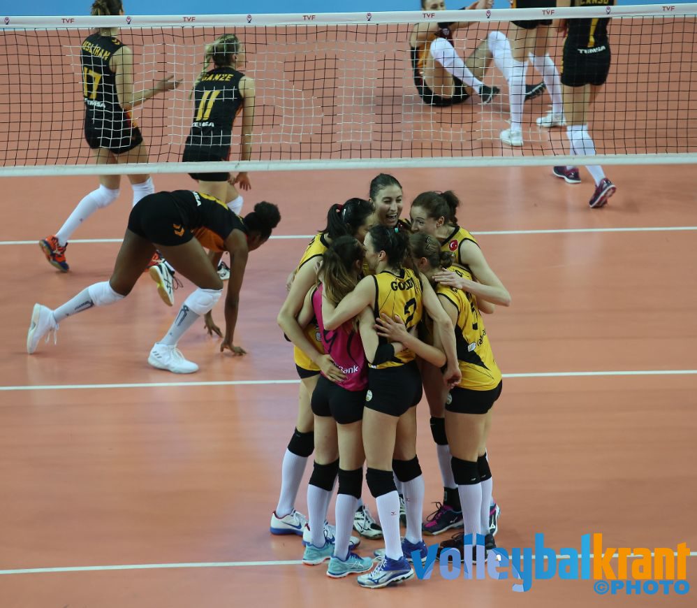 De uitwedstrijd had Vakifbank nog met overtuigende cijfers gewonnen, maar Galatasaray liet eens te meer zien dat het met vechtvolleybal een heel eind kan komen. Wel moest het team het stellen zonder superster Kosheleva, die in de heenwedstrijd geblesseerd raakte en een lange revalideerperiode tegemoet gaat. In de eerste twee sets deden de teams weinig voor elkaar onder. Nadat de thuisploeg de eerste set nipt had gewonnen (25-23), was de tweede set met het minimale verschil voor de gasten (24-26). Galatasaray pakte vervolgens ook set drie (22-25), waarna set vier een ware thriller werd.