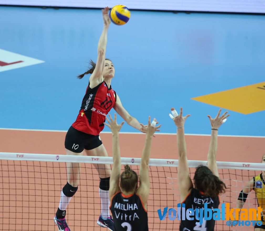 Vakifbank heeft gisteren de eerste slag geslagen in de strijd om het Turkse landskampioenschap. In een sfeervolle hal werd het een mooie wedstrijd tussen de twee topteams uit de competitie, waarna Vakifbank uiteindelijk in drie sets de sterkste bleek te zijn.