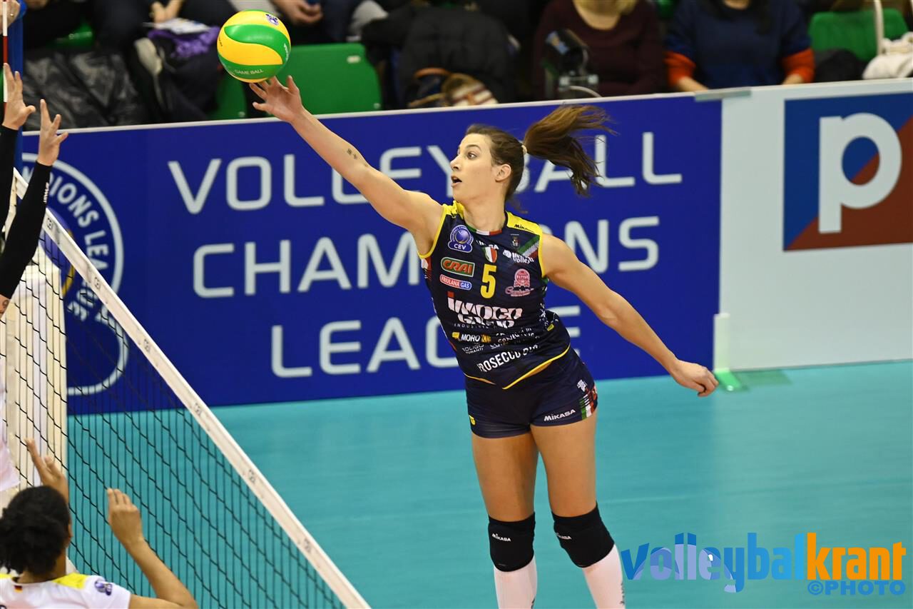 Conegliano moest afgelopen weekend de beker aan Novara laten en had gisteren de moeilijke CL-wedstrijd tegen Schwerin. De uitwedstrijd in Duitsland had Schwerin met verrassend veel overtuiging gewonnen (3-0), dus Conegliano kon zich opmaken voor een lastige avond in Poule D. Dat bleek maar weer toen Schwerin brutaal de leiding nam. In de tweede set kreeg Conegliano, met Robin de Kruijf in de basis, meerdere setpoints om de stand gelijk te trekken, maar Schwerin kwam via 24-26 op een 0-2 voorsprong. Santarelli besloot zijn team om te gooien en bracht drie verse krachten het veld in. Dat bleek de juiste zet, want in het vervolg was de thuisploeg een stuk beter. De inbreng van Britt Bongaerts kon daar niks aan veranderen en zo werd het toch 3-2: 23-25, 24-26, 25-19, 25-19 en 15-7. De Kruijf kwam 14 keer tot scoren, Bongaerts scoorde 2 punten. Voor Tessa Polder was slechts een korte invalbeurt weggelegd.