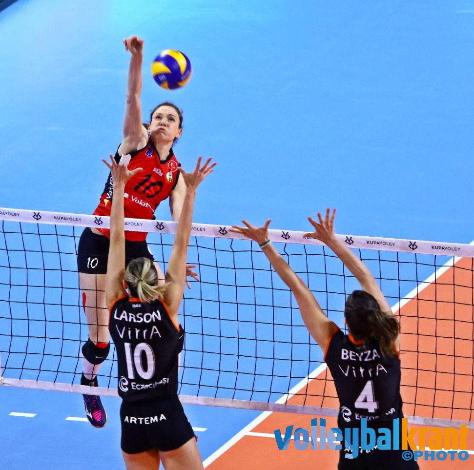 Die finale werd een dag later, op zondag, gespeeld. Daarin was Eczacibasi van tevoren toch wel de favoriet te noemen. Een paar weken geleden eindigde de competitiewedstrijd tegen Vakifbank nog in een ruime overwinning voor de club van onder andere Boskovic en Larson, waarbij één set zelfs met 25-9 verloren ging voor Sloetjes en consorten. Vakifbank liet in deze finale echter zien geleerd te hebben van de vorige ontmoeting. Het team van Guidetti was in set één bij de big points de beste en aan de hand van een veel scorende Sloetjes werd die set met 22-25 gewonnen. Ook in set twee lukt het Vakifbank om een aardige voorsprong op te bouwen en gaf die niet meer uit handen (18-25).