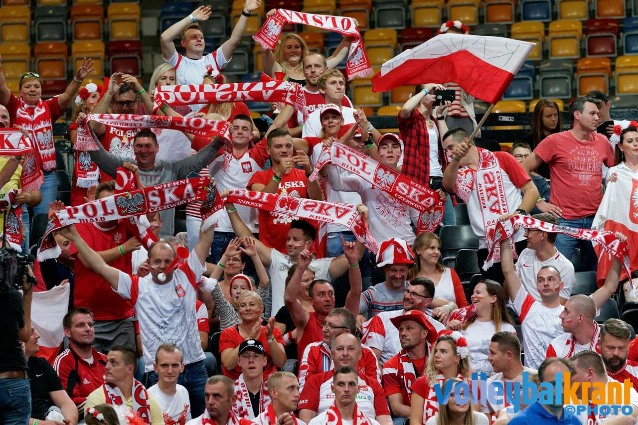 Daarin treft het titelfavoriet Polen. De ploeg van de Belgische topcoach Vital Heynen had in een rood-wit gevuld Omnisport in Apeldoorn geen kind aan Duitsland. Aan Duitse kant kwam veteraan György Grözer tot 18 punten, maar stelde de rest van zijn team scorend gezien teleur. Grote man bij de Polen was Wilfredo Leon. De geboren Cubaan liet zien waarom hij door velen als beste speler van de wereld wordt beschouwd. Zijn aanvallen bleken zoals zo vaak onhoudbaar voor de verdediging en brachten de duizenden aanwezige Polen in extase.