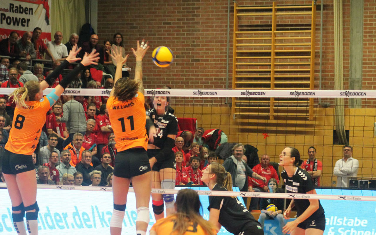 Ook zondag was het smullen geblazen voor de liefhebbers van spanning. Wiesbaden (met Nynke Oud) moest tegen Erfurt tot het uiterste gaan om na twee uur en twintig minuten de 3-2 winst binnen te halen. Het was eigenlijk elke set smullen geblazen: 29-27, 28-30, 25-22, 16-25 en 16-14. Oud speelde vrijwel de hele wedstrijd.