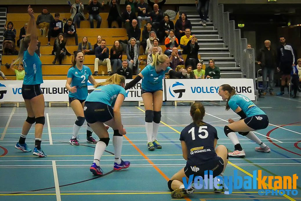 Een spannende vijfde set waarin beide teams kans hadden op de overwinning, was het gevolg. Een set waarin het kwartje naar de Tilburgse zijde rolde.