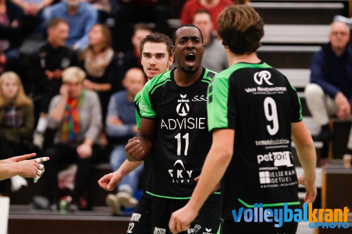 Bijzonder sfeervol was de ontmoeting tussen de Gelderse concurrenten Advisie/SSS en Draisma Dynamo. Onder luide aanmoedigingen van het publiek wonnen de Barnevelders voor de tweede keer dit seizoen van ‘de grote buurman’: 27-25, 19-25, 25-19, 25-23. De thuisploeg deed het prima maar had ook het geluk dat de Noor in Apeldoornse dienst, Isak Helland Hansen, in de eerste set geblesseerd raakte. Bij een blok op Ivar de waard, liep hij een ernstige handblessure (pink uit de kom of gebroken).
