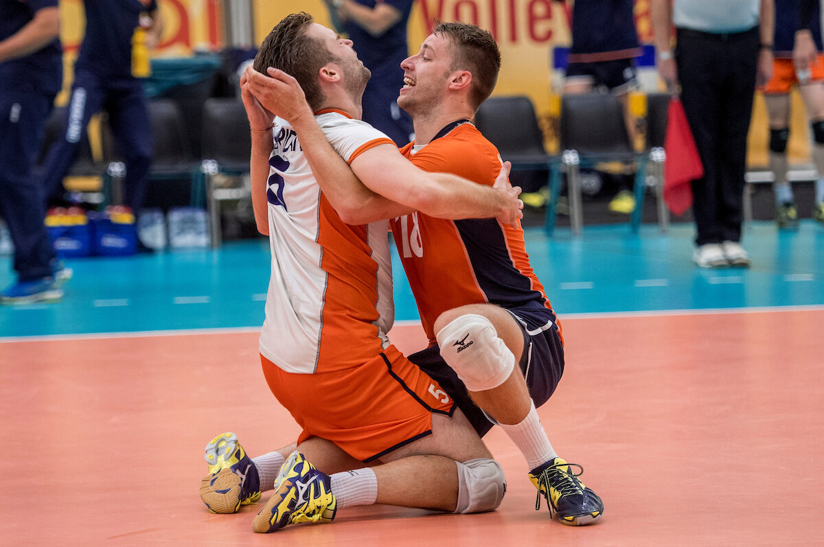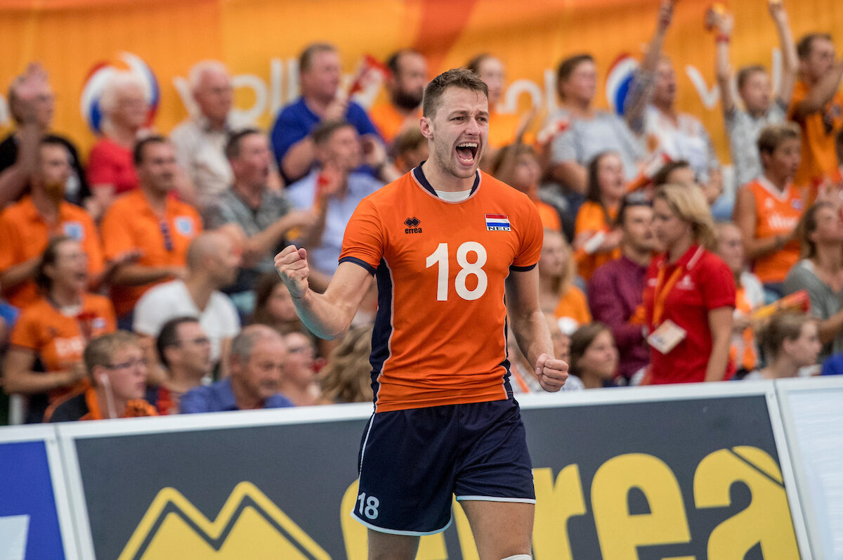 "Dit is wel heel erg lekker," klinkt het uit de mond van de passer-loper van de Lange Mannen. Ik ben echt blij. We hadden het lastig in de eerste set en pakken het goed terug in de tweede." Hij kijkt om zich heen, het Topsportcentrum De Koog is nog vol Oranjefans. "Als je het dan zo mag afmaken in die vierde set, met dit publiek... Ja, dat voelt wel goed."