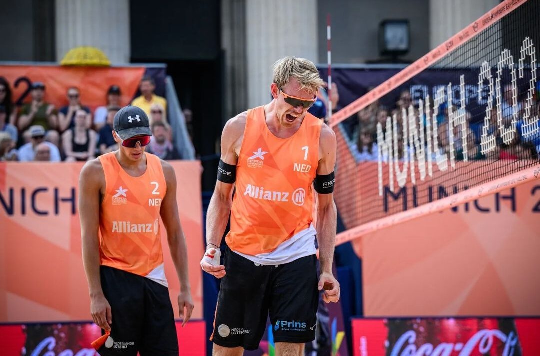 Katja Stam en Raïsa Schoon hebben tijdens het EK beachvolleybal de kwartfinale bereikt. Op centercourt was het vandaag in drie sets te sterk voor de gezusters Makhno. Ook Steven van de Velde en Mart van Werkhoven wonnen. Zij spelen morgen de achtste finales. Boermans/Immers en Penninga/Luini zijn uitgeschakeld. Beide teams verloren in drie sets. Boermans liep in zijn wedstrijd een vervelende duimblessure op, maar weigerde op te geven.