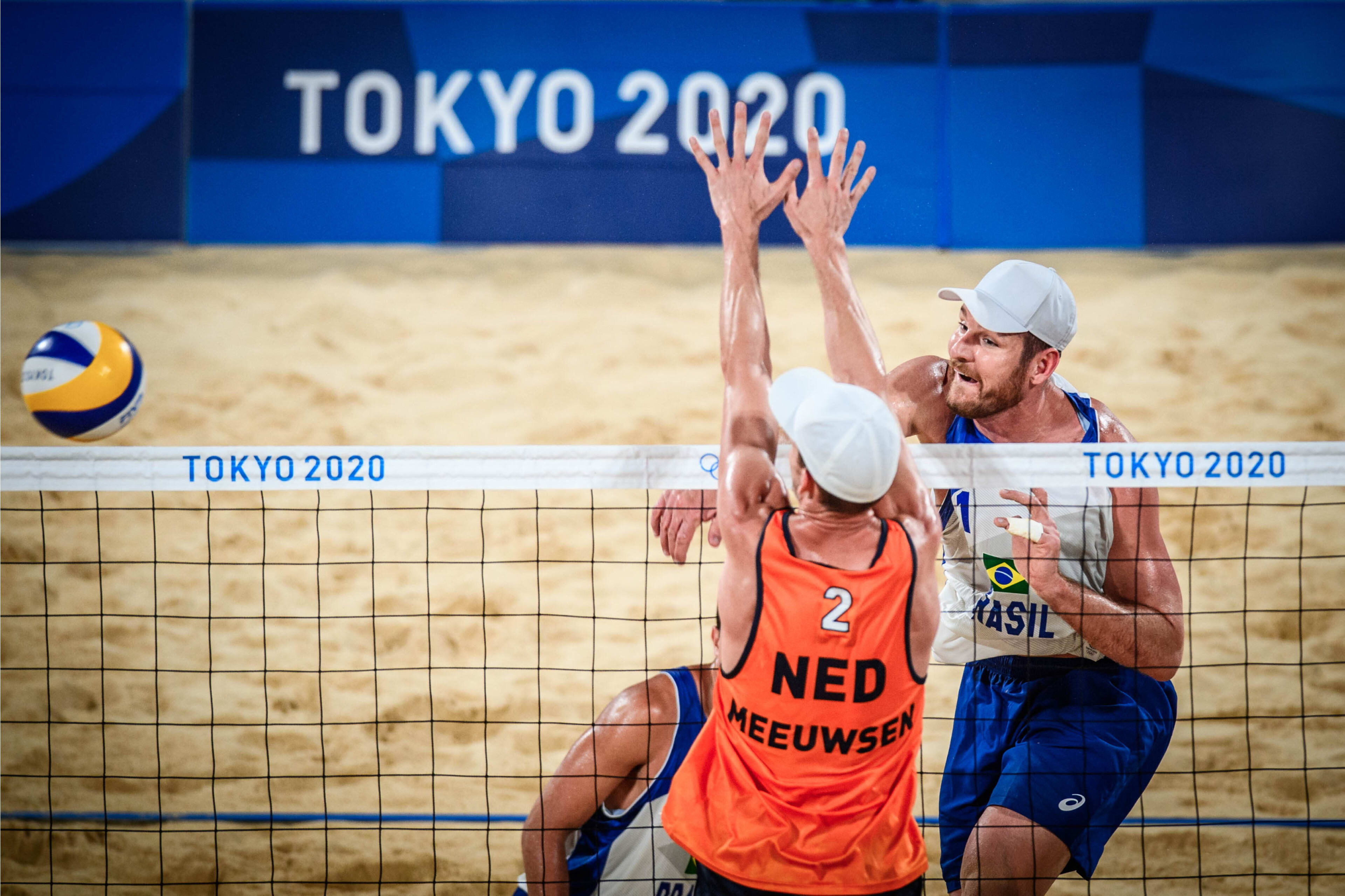 In de tweede set was het Brouwer die via zijn verdediging meerdere kansen creëerde. Hij leidde zijn team naar 7-5. Nederland ging -mede dankzij een aanvallend sterke Meeuwsen - op 11-10 de technische time-out in. Na die time-out kreeg Brouwer het aan het net moeilijker (12-15). Maar ook Brazilië liet later steken vallen (15-15). De teams gingen zij aan zij richting het einde van de set. Nederland werkte het eerste matchpoint van de Zuid-Amerikanen weg en twee punten later kwam het goed weg door een zeldzame fout van Alvaro (22-22). Dezelfde Alvaro stelde echter orde op zaken met twee geweldige acties in het achterveld, wat zijn duo uiteindelijk de overwinning bracht. Via 22-24 werd ook de tweede set verloren en zag Brouwer en Meeuwsen de Brazilianen juichen om winst in de poule. Gelukkig waren ook Alexander en Robert al verzekerd van een direct ticket. Zaterdag zullen we horen wie de tegenstander wordt in de achtste finales van de Olympische Spelen in Tokio.