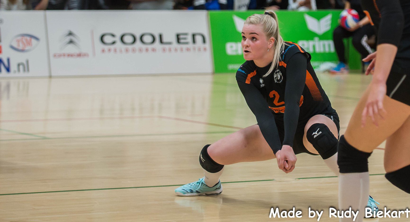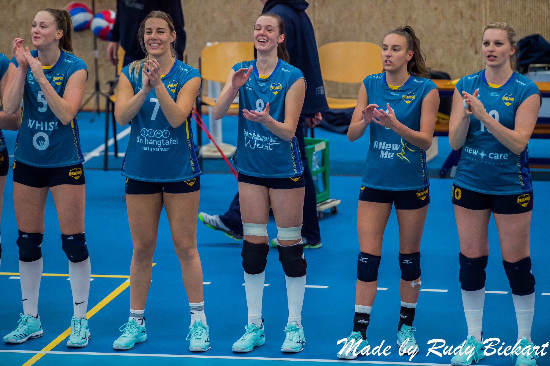 Sliedrecht zal een fijne zondag gehad hebben, want de naaste concurrentie leed puntverlies. Eurosped en Apollo 8 speelden zondagmiddag beiden een vijfsetter tegen respectievelijk FAST en Peelpush. Vorige week had Peelpush ook al een punt gepakt tegen Eurosped, nu wist het zelfs twee punten te halen tegen Apollo 8. Ook nu was het scoreverloop gerust bijzonder te noemen. Na de eerste twee sets leek namelijk niks erop te wijzen dat Peelpush er met de zege vandoor zou gaan. Voor de bezoekers uit Borne was er geen vuiltje aan de lucht na de 18-25 en 14-25. Peelpush sleepte er op karakter echter een vijfsetter uit (25-22, 25-17), die vervolgens ook door de thuisploeg gewonnen werd (15-12). Met name aanvallend was Peelpush sterk, aan de hand van Claire Crijns (17 punten) en Celine Keijsers (13 punten).