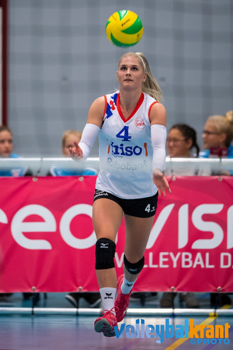 Alle ogen waren gisteren vooral gericht op het duel tussen VC Sneek en Set-Up '65, die met elkaar strijden om de tweede plek in de kampioenspoule. Sneek moest thuis winnen van Set-Up '65 om een finaleplaats in het vizier te houden, gezien de achterstand van drie punten. De Friese ploeg begon uitstekend aan de wedstrijd, Hester Jasper serveerde haar team al snel naar 6-0. De servicedruk van de thuisploeg bleef goed, want via 11-3 en 20-8 werd het al snel 24-13. Roos van Wijnen sloeg vervolgens de 25-15 tegen de grond.