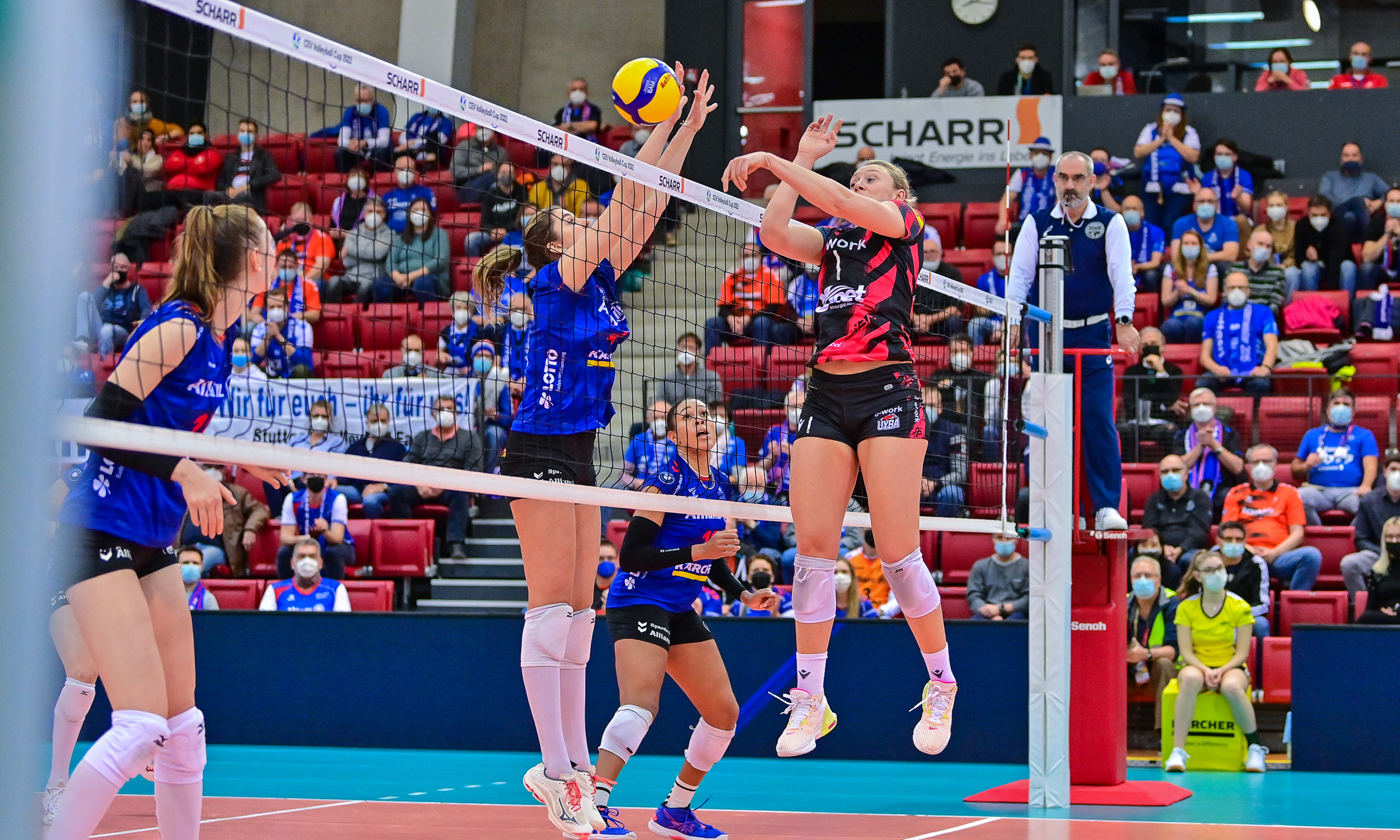 Tweee teams uit de Bundesliga kwamen deze week succesvol in actie in de CEV Cup. Indy Baijens en Femke Stoltenborg hadden met SSC Palmberg Schwerin de eerste ontmoeting met FC Porto al overtuigend gewonnen en hadden daardoor in de return aan twee sets genoeg om zich te plaatsen voor een vervolg van het Europese avontuur. Na twee spannende sets (26-24, 23-25) was Schwerin daarna in eigen huis de betere en plaatste het zich overtuigend voor de volgende ronde (25-16, 25-19). De beide Nederlandse speelsters kwamen beperkt in actie, maar pikten toch wat puntjes mee. Baijens scoorde 6 keer, Stoltenborg maakte 2 punten.