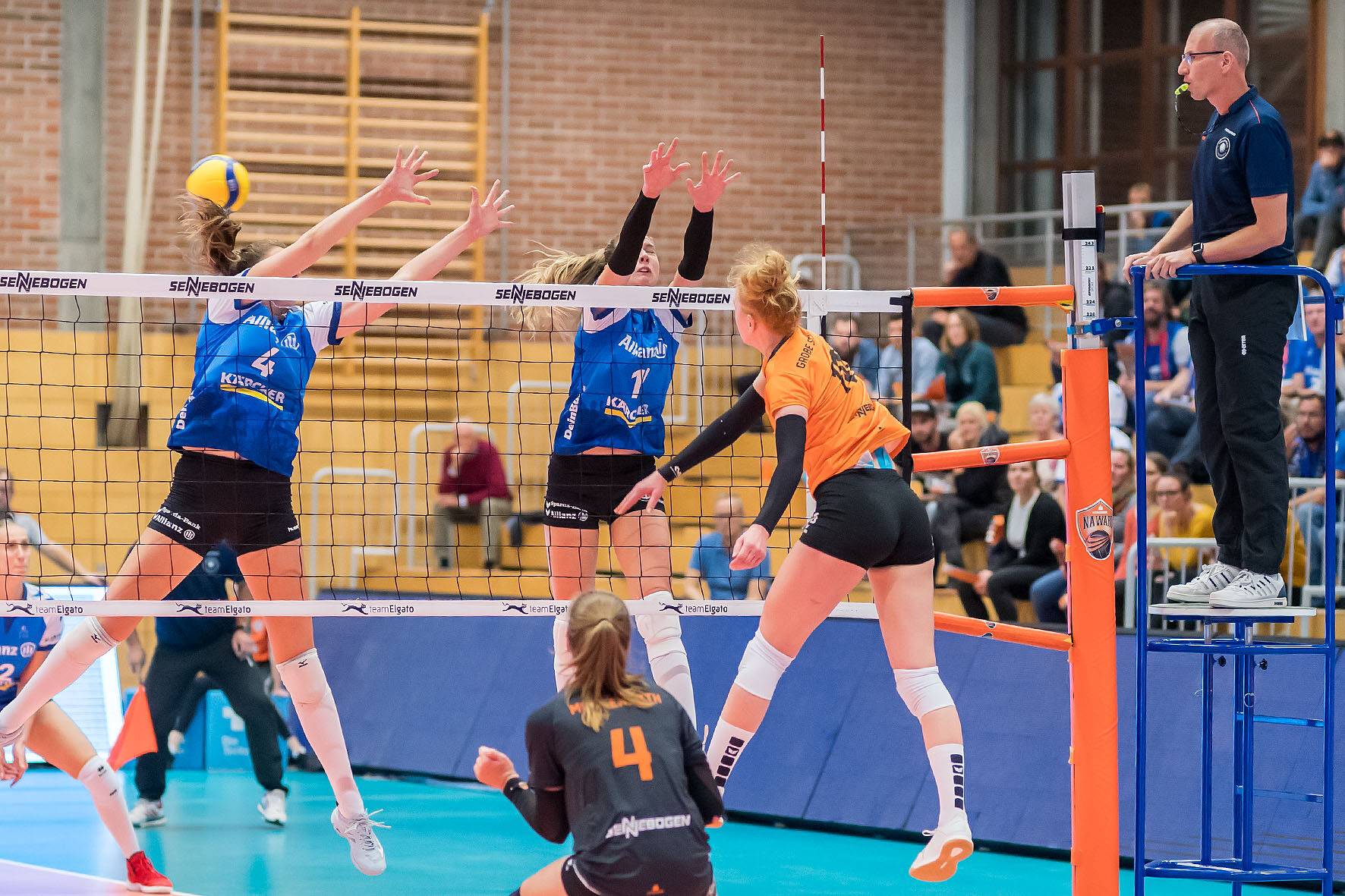 Aachen staat door de 3-2 winst bij Dresdner SC op een 3e plaats met 7 punten. Tessa Polder en Marrit Jasper speelden de hele wedstrijd, Lynn Bleckers kreeg geen speelminuten. Laura de Zwart bleef bij Dresdner ook aan de kant. Dresdner kwam met 1-0 en 2-1 twee keer in sets op voorsprong. Aachen kwam beide keren langszij en wist de beslissende set met 12-15 te winnen.