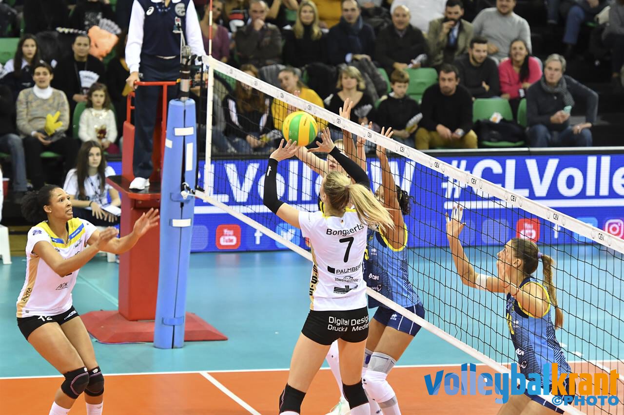 Vilsbiburg kreeg dit weekend bezoek van de 'Ladies In Black'. Het lager geklasseerde Vilsbiburg, dat eerder last had van vele blessures, wist Aachen te verrassen met een zege in drie sets. Bij de ploeg van Saskia van Hintum kregen alledrie de de Nederlandse internationals een basisplek. Kirsten Knip, Marrit Jasper en Nicole Oude Luttikhuis kwamen aan de andere kant van het net één landgenoot tegen. Iris Scholten mocht ook weer in de basis beginnen. Hoewel de setstanden niet ver uit elkaar lagen, had Vilsbiburg bijna het hele duel de touwtjes in handen. Er stond telkens snel een verschil van 3 à 4 punten op het scorebord, een voorsprong die de hele set vastgehouden werd. Alleen in set drie had Aachen even het initiatief, maar een 3-8 voorsprong verdween al snel. Via 25-23, 25-22 en 25-20 won 'Rote Raben' met 3-0. Scholten scoorde 11 keer, Jasper kwam tot 8 punten en Oude Luttikhuis tot 6.