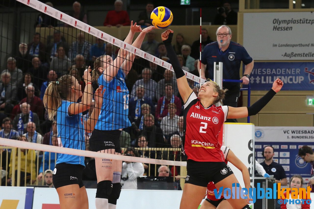 Stuttgart nestelde zich weer op plek twee door bij Wiesbaden met 3-1 te winnen. De ploeg van Deborah van Daelen, Femke Stoltenborg en Nika Daalderop ging furieus van start, won de eerste twee sets overtuigend, moest de derde afstaan aan de thuisploeg maar was in set vier weer duidelijk de beste: 1-3 (9-25, 15-25, 25-19, 17-25). Vier veel scorende Stuttgart-speelsters, Van Daelen, McCage, Sandor en Mlejnkova (allen 15 punten of meer) waren Wiesbaden veel te veel. MVP werd Deborah van Daelen (15 punten), spelverdeelster Femke Stoltenborg kwam tot 3 punten terwijl Nika Daalderop slechts kort inviel.